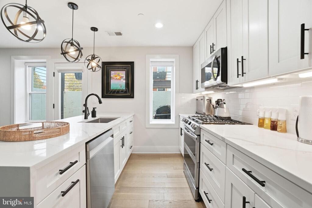 2BR+DEN/2BA UNIT WITH RESERVED PARKING INCLUDED! Don't miss this stunning, sun-drenched luxury condo perfectly situated on a charming tree-lined street in the heart of DC’s vibrant Park View neighborhood. Originally converted in 2023, this impeccably designed 2-bedroom, 2-bath residence with a flexible study/office space offers approximately 1,100 square feet of refined living. The home’s corner lot orientation floods the space with natural light, highlighting its open, airy layout and sophisticated design. Every detail has been thoughtfully curated including custom-stained 5 white oak flooring, recessed lighting, and modern fixtures throughout. The chef-inspired kitchen features quartz countertops, a full-height tile backsplash, white shaker cabinetry with soft-close doors and drawers, premium stainless steel appliances including a double oven, and waterfall quartz counters on the large breakfast bar, making it as functional as it is beautiful. The serene primary suite features a custom-designed closet that maximizes storage and a spa-inspired en-suite bathroom with a double vanity and sleek glass shower. An additional bedroom with a custom closet and a full hall bathroom complete this beautiful space. Enjoy the best of city living with an in-unit LG washer and dryer, private entrance, and A RESERVED PARKING SPACE INCLUDED—offering exceptional convenience in one of DC’s most desirable neighborhoods. This modern smart home features several tech enhancements including smart switches, a smart thermostat, and custom automatic shades throughout. Enjoy the convenience of high-speed Cat8 wiring and Ethernet ports in every room too! Located on a tree-lined street, you’re just minutes from local parks, the Park View Recreation Center, Old Soldiers' Home Golf Course, Metro, neighborhood markets, coffee shops, and an array of dining and entertainment options along Georgia Avenue including The Midlands Beer Garden and Call Your Mother Deli. If interested, unit is also available for purchase for $559,900 and an additional cost for the parking space."