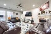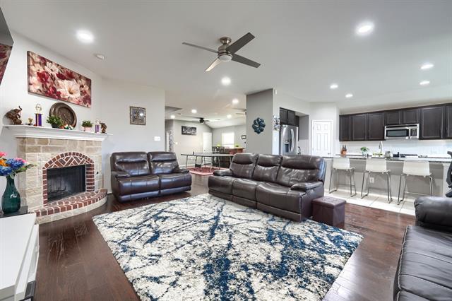 Experience elevated living in this beautifully appointed home featuring an expansive open-concept design, rich wood flooring, and thoughtfully designed spaces ideal for both everyday living and entertaining. The original formal dining room and 4th bedroom have been transformed into a sophisticated game room, creating a one-of-a-kind space perfect for hosting or for your kids to play in. The spacious living area is anchored by a gas fireplace and flows seamlessly into the chef-inspired kitchen, complete with granite countertops, stainless steel appliances, a 5-burner gas range, a walk-in pantry, and a bright dining nook overlooking the backyard. The private owner's suite offers a peaceful retreat with abundant natural light and a spa-like ensuite featuring dual vanities, a soaking garden tub, a separate shower, and a generous walk-in closet. Enjoy outdoor living with a covered patio ideal for relaxing or entertaining, plus an extended open patio with ample space for additional seating or a future hot tub setup. Located in the award-winning Light Farms master-planned community, residents enjoy access to resort-style amenities including multiple pools, a fitness center, parks, trails, playgrounds, and year-round events. Conveniently located near shopping, dining, and the new HEB, with easy access to major highways. The tenant is responsible for pest control, all utilities, and lawn mowing. The owner pays for the HOA, and the tenant can use the pool