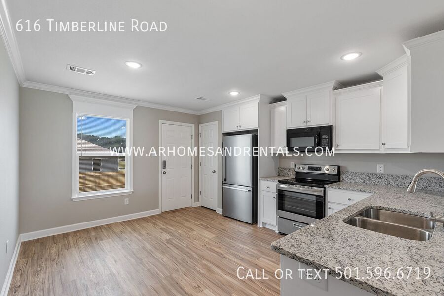 616 Timberline Road Jacksonville, AR 72076 Don't miss out on the opportunity to make 616 Timberline Road in Jacksonville your new home. Contact us at: today for more information on leasing options or apply now at our direct website: Features: 1/2 Off Deposit Special!!! New Construction -3 Bedrooms -2 Bathroom -2 Car Garage -All electric -Central heat and air -Ceiling fans -Stainless steel appliances -Granite countertops -Refrigerator -Electric stove -Dishwasher -Microwave -Pantry -Washer and dryer hookups -Walk-in closet -Master Bath -Spacious yard -Fenced-in backyard -Porch -Patio All Electric Central Heat And Air (Electric) Electric Water Heater Garage Granite Countertops Porch/Patio Refrigerator/Stove/Microwave/Dishwasher Spacious Front Yard/Fenced In Backyard Washer And Dryer Connection