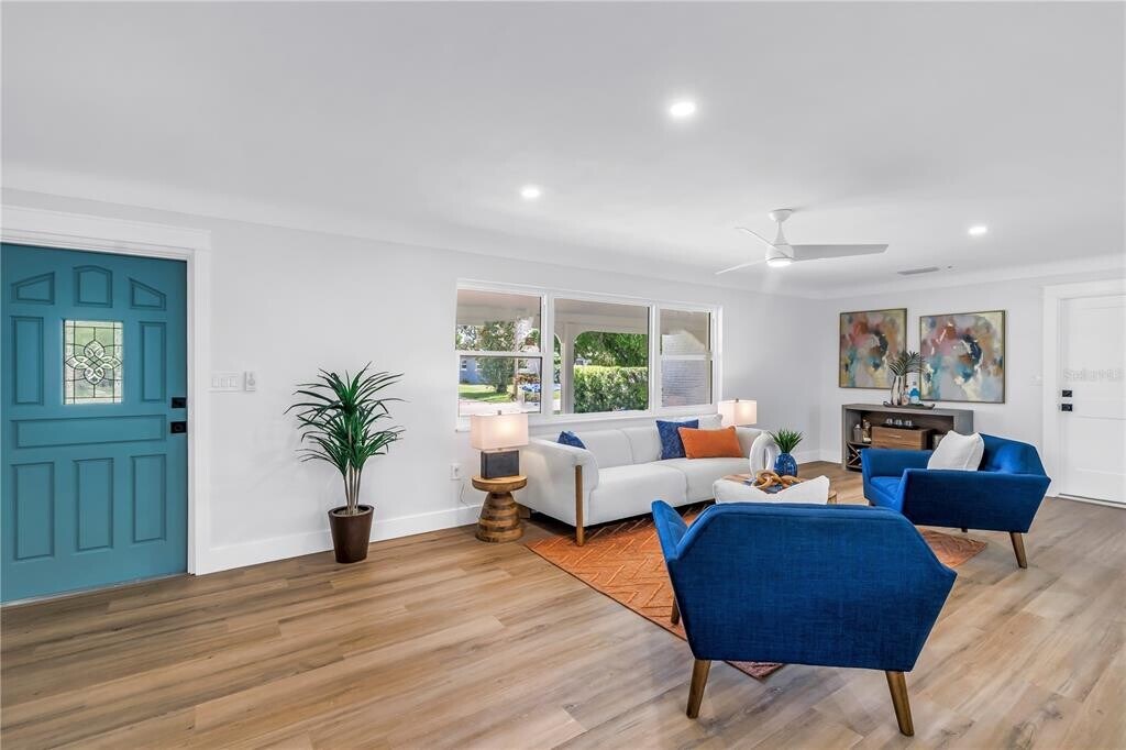 Must see!!! This home is like purchasing a brand new home but with 1960's bones. Move right into this updated 3 bed,2 bath home with a large fenced yard and a one car garage! All your main components brand new in 2024/2025... Roof,HVAC & duct work,impact windows & sliding glass door,electrical panel and hot water heater. Open split floor plan with luxury vinyl flooring throughout (tile in baths). Modern kitchen with new stainless appliances,gorgeous granite counters,lots of soft close cabinets & drawers,custom island with built in drawer microwave... New interior & exterior paint and all new interior doors. All bedroom closets have recessed lighting. Cozy back patio with Sun Shade coverage. Located in highly desired Sheryl Manor on a dead end street with no through traffic. About 1 mile to Northwest Recreation Center with a pool,tennis/ pickleball courts,ball fields,playground,community classes and events... Approximately 2 miles to Tyrone Mall. 15 minute drive MOL to the Gulf and white sandy beaches of West Florida. About 15 min drive in the opposite direction and you're in downtown St. Pete with it's Bay front parks,shops,recreation,museums,nightlife,and entertainment for all palates! Available for immediate occupancy. MLS# TB8440161