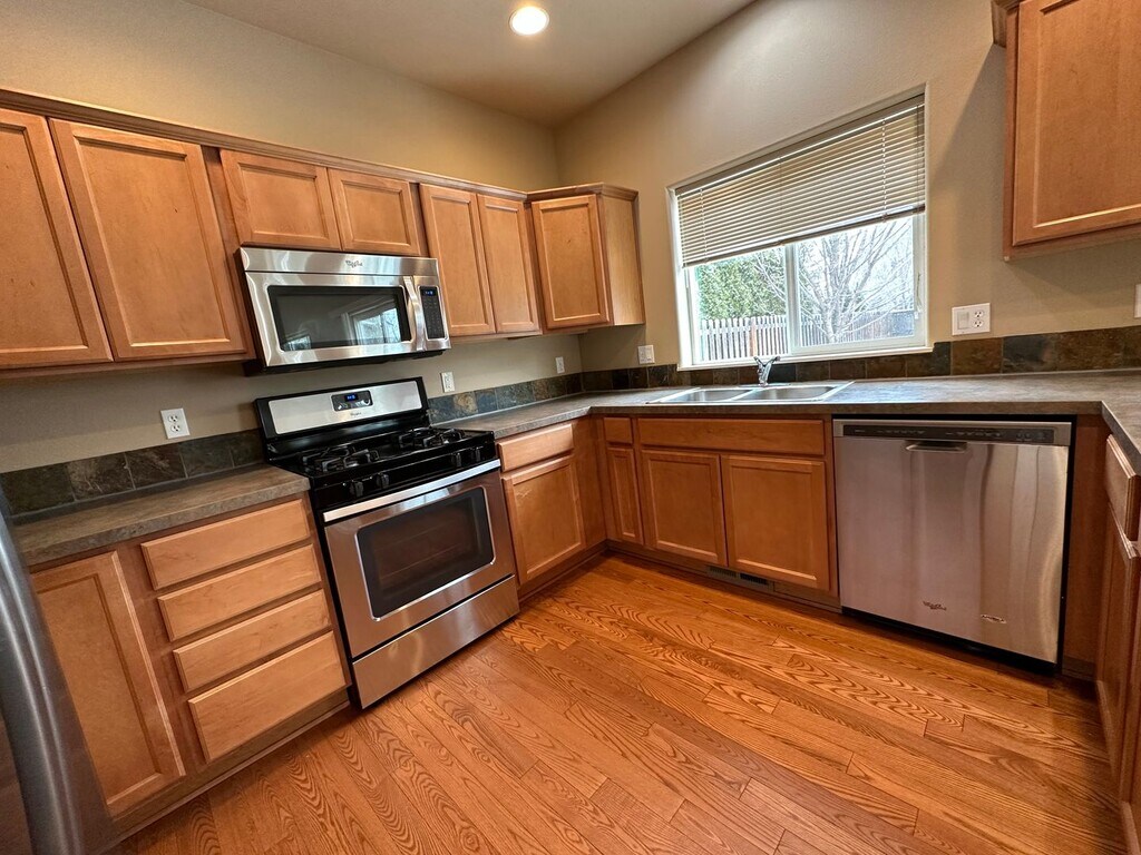 Located in a desirable SE Bend neighborhood, this home offers exceptional value and comfort. The main level features an inviting open great room with a cozy gas fireplace, a dedicated dining area, and a convenient main-floor bedroom perfect for guests, an office, or flexible living. Upstairs, the spacious primary suite feels like a retreat with its soaking tub, dual vanities, and generous walk-in closet. The laundry room is also thoughtfully located on this level for ease. Outside, enjoy a large fully fenced backyard great for play or relaxation, plus an attached two-car garage for everyday convenience.