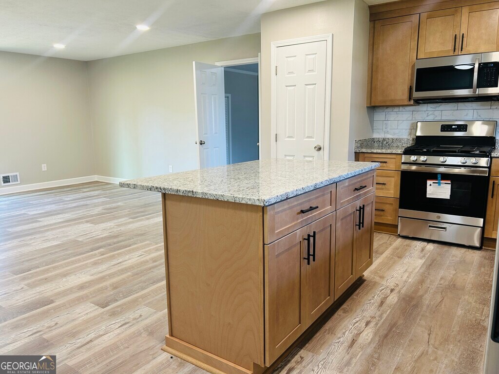 Beautifully fully remodeled 3-bedroom, 2-bathroom ranch offering modern upgrades and a spacious, open-concept layout. The stunning kitchen features brand new cabinets, granite countertops, and stainless steel appliances, all overlooking the main living area-perfect for entertaining. Luxury vinyl plank flooring runs throughout the entire home, providing both style and durability. Enjoy the added flexibility of a large bonus room, ideal for a home office, playroom, or second living space. Both bathrooms have been completely renovated with new vanities and beautifully tiled showers. The generously sized bedrooms each include ceiling fans for added comfort. Step outside to a brand new deck overlooking a large, private lot-perfect for relaxing or hosting gatherings. A covered front porch adds even more charm to this inviting home. Conveniently located near I-85, Hartsfield-Jackson Atlanta International Airport, as well as shopping, dining, and more, this home offers both comfort and accessibility. MLS ID 10719643