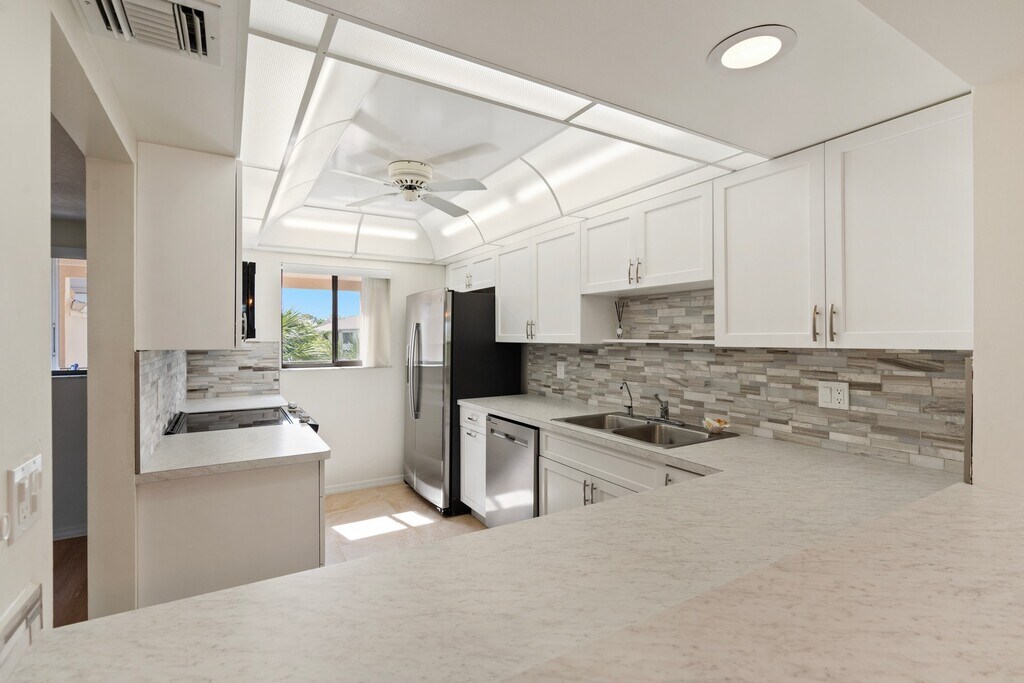Top-floor unit with breathtaking river views and tons of natural light! Enjoy maintenance-free living in this beautifully remodeled condo featuring new vinyl plank flooring, an updated kitchen with new cabinets and updated appliances, and no popcorn ceilings. Additional highlights include a 2020 water heater, 2015 Trane AC, and a 2023 roof replacement. Enjoy attic storage, a stackable washer and dryer, and a deeded carport with extra storage. The amenity-rich community offers a heated riverfront pool, clubhouse, tennis/pickleball court, BBQ area, dock with kayak storage, and vibrant monthly events.