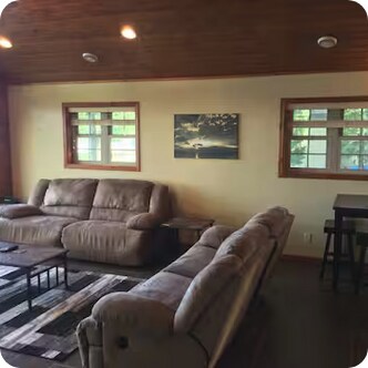 Located directly on Shawano Lake, this home is perfect for swimming, boating, fishing, and ATV/snowmobile trips. This listing is suitable for family vacations and adult weekends. Also, only a half hour drive to Lambeau for Packer games! *Inquire about our slow season discounted rates for groups of 4 or less* The space: This 2-bedroom home with a separate bunk house can sleep 12 people comfortably and has 2 full size bathrooms along with a 3rd outdoor shower. The large kitchen with a bar is perfect for meals and has plenty of seating for happy hours. Outdoor covered patio also gives you dining and gathering options for those unexpected rain delays. This home also has Wi-Fi for those working from home. Guest access: Circle drive and car port provide plenty of parking for vehicles and a boat trailer if needed. Boat launch is just around the corner. Other things to note Two kayaks are available for rent- $30 per kayak for your stay. Notification at booking is recommended or at least two weeks prior to check in. Liability waiver must be signed. Firewood can be pre-ordered for $10 a basket, will last three to four hours. The dock is seasonal. The beach is raked and cleaned on a weekly basis- however if needed during your stay there are community takes on left side of property by trees. If you notice any damages upon arrival please communicate immediately to avoid any potential disputes.