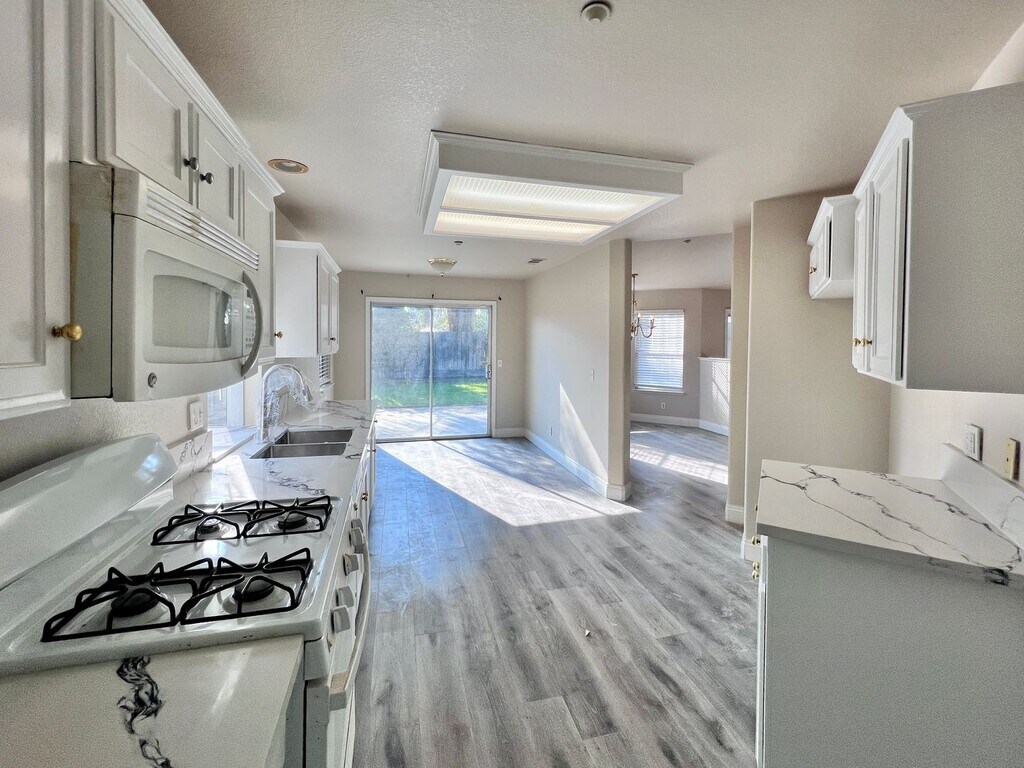 CLICK here to schedule a showing: New LVP Flooring & New granite kitchen counters. This lovely 4 bedroom 2 bath home has 1809 sq. ft. and was built in 2000. Single story. Spacious floor plan with formal dining room, living room, and lvp flooring. Kitchen has lots of cabinet space, refrigerator, microwave, gas stove. Indoor laundry hook ups. Main bedroom has a private bath with dual sinks, separate tub and shower, and walk in closet. Three additional bedrooms. Hall bathroom has tub/shower. Two car garage has storage cabinets. Back yard has storage shed. Yard care provided. No pets. No smoking. Credit score above 650 required. Renter's insurance is required. Cross streets are Barstow & Hwy 99, just west of the Island Water Park. Call to schedule a showing or to contact the office. DRE# 01901101. All information is deemed reliable but not guaranteed and is subject to change.