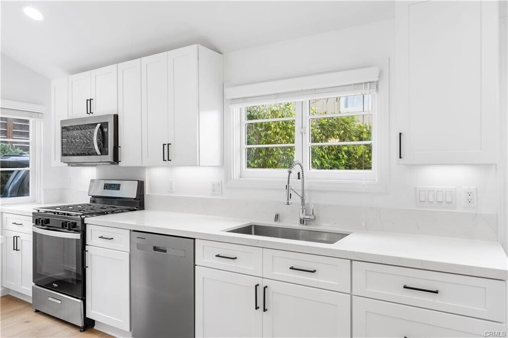 - Charming Standalone Laguna Beach Cottage Near the Beach! Tucked away on a shared lot yet completely standalone, this beautifully renovated front cottage offers the privacy of a single-family home just blocks from the stunning shores of Laguna Beach. With 2 bedrooms and 1 bathroom, this inviting retreat has been thoughtfully updated with new plumbing, electrical, roof, and windows, blending modern convenience with timeless coastal charm. Step inside to find hardwood floors throughout, an airy living space with open-beamed ceilings, and a cozy fireplace that sets the perfect ambiance. The seamless flow between the living room, dining area, and kitchen makes this home feel both spacious and welcoming. The kitchen is a dream, featuring stainless steel appliances, a farmhouse sink, and recessed lighting. Sunlit bedrooms offer built-in storage, a charming bay window, and plenty of natural light. Outside, a white picket-fenced front patio with beautiful brickwork creates a picturesque space for relaxing or entertaining. While the garage provides excellent storage and includes a washer/dryer, it is not available for parking. However, convenient street parking is available, including a space right in front of the home. With the beach less than half a mile away, this delightful cottage is the perfect place to enjoy the best of Laguna Beach living! Listing provided by: Billy Rosenberg of Billy Rosenberg Broker LA State License 1995754 Listing posted by Orange County [SYNDID 4139560 10122025]