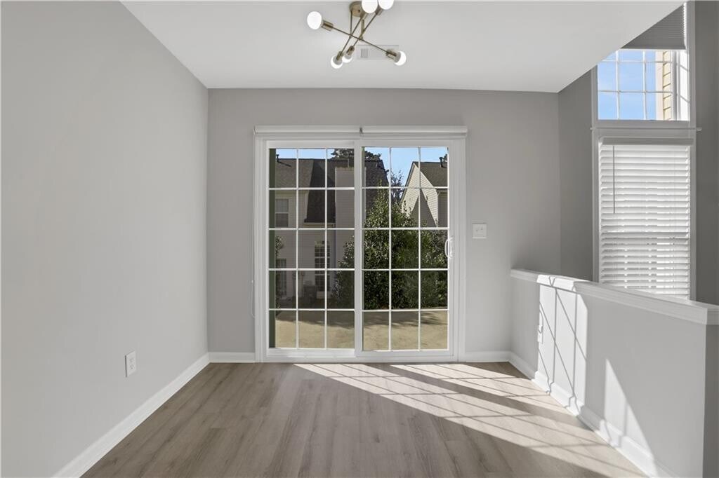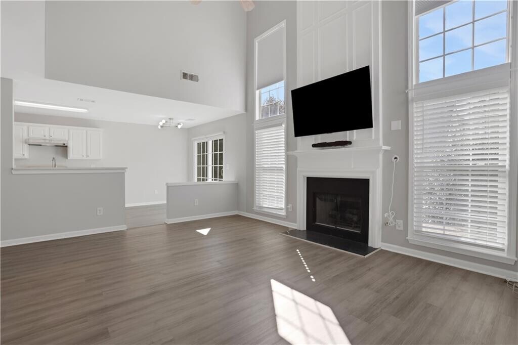 Lovely 3BR/2BA townhouse with a two-car garage in the highly desirable Whittington community. A welcoming foyer leads into the bright main living area featuring soaring high ceilings and an open,airy feel. The spacious living room offers a fireplace and abundant natural light. The updated kitchen includes modern countertops,updated fixtures,ample cabinetry,and a functional layout with breakfast area and access to the back patio. The large primary suite offers vaulted ceilings and a private en-suite bath complete with double vanity,soaking tub,and a separate shower with modern glass enclosure and generous closet space. Terrific location just off Windward Parkway (Exit 11),minutes from GA-400,Avalon,Halcyon,downtown Alpharetta,shopping,dining,and major employers. HOA covers landscaping,trash collection,pest control,and exterior maintenance. Community amenities include a swimming pool and green space. MLS ID 7720989