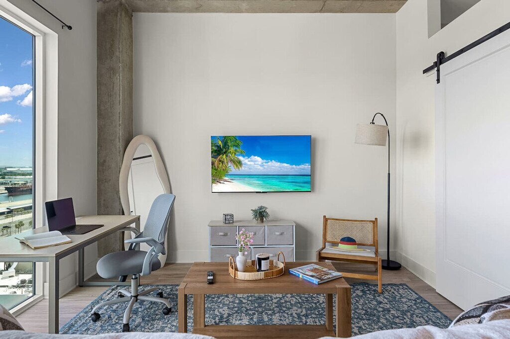 Discover your perfect blend of work and play in this newly introduced luxury apartment, nestled in the pulsating heart of Tampa's Channelside district. Designed with the discerning traveler in mind, this sophisticated living space offers a serene retreat from the bustling city life, making it an ideal choice for professionals seeking a temporary residence while in town for work. Step into a haven of elegance and comfort in this modern apartment, where every detail is crafted to enhance your living experience. Featuring spacious living areas, state-of-the-art amenities, and a fully equipped kitchen, it's tailored to meet the needs of those who value both efficiency and style. High-speed internet and a dedicated workspace ensure you stay productive, while the plush bedding promises restful nights. Pets are welcome with a $45 fee per pet. Early check-in is available for $25 at 2 PM or $50 at 12 PM, and late check-out is available for $25 at 12 PM, subject to approval. Amenities outside of the apartment, such as the gym, are managed by the building and are subject to maintenance outside of our control. Strategically located in the vibrant Channelside area, this apartment puts you in close proximity to Tampa’s dynamic downtown, a plethora of entertainment options, and iconic stadiums. Whether you're looking to explore the city's rich cultural tapestry or simply enjoy the convenience of having top-tier dining and shopping venues within walking distance, this location serves as the perfect base. Noise detectors are located in the apartment and monitor noise levels. Smoking will result in a $500 fine. Absolutely no parties allowed, with violations resulting in a $1,000 fine and immediate eviction with no refund. A noise curfew is in effect from 10 PM to 7 AM on weekdays and 10 PM to 8 AM on weekends, with penalties for violations. Guests must be 21+ to book a reservation. Checkout requires loading and starting the dishwasher with all dirty dishes and disposing of trash properly. A smartphone is required for building access as the locks work through a smartphone application. Includes high-speed internet and a dedicated workspace to ensure you stay productive.