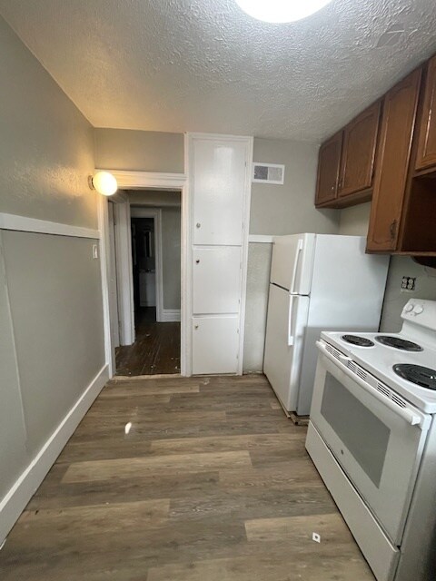 Spacious downstairs apartment with hardwood and new vinyl floors! Fridge, stove, water, trash and landscaping included in the lease. Laundry hookups in basement. Detached garage included! No pets. Tenant pays electric and gas. No pets. One year lease including fridge and stove. No security deposit, non-refundable move in fee instead of $500. Lease breakage fee applies. Application fee is non-refundable. Showings are only scheduled with approved applicants. Section 8 welcome.