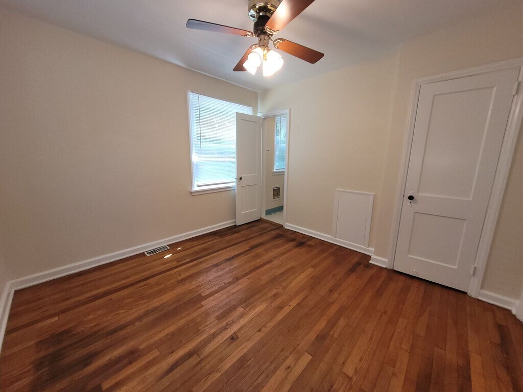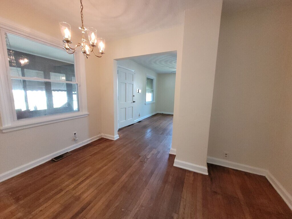 Adorable 2 bedroom home with 1 bathroom. Original hardwood floors gleam with fresh paint throughout. Updates to bathroom and kitchen. Huge 2nd floor could be used as a craft room, home office or keep as storage attic. Covered and enclosed front porch. Large yard and off street parking. Semi fenced yard. Newer roof and refrigerator. Shed in backyard not for tenant use. Pets considered with deposit. Available April 3rd Apply online at