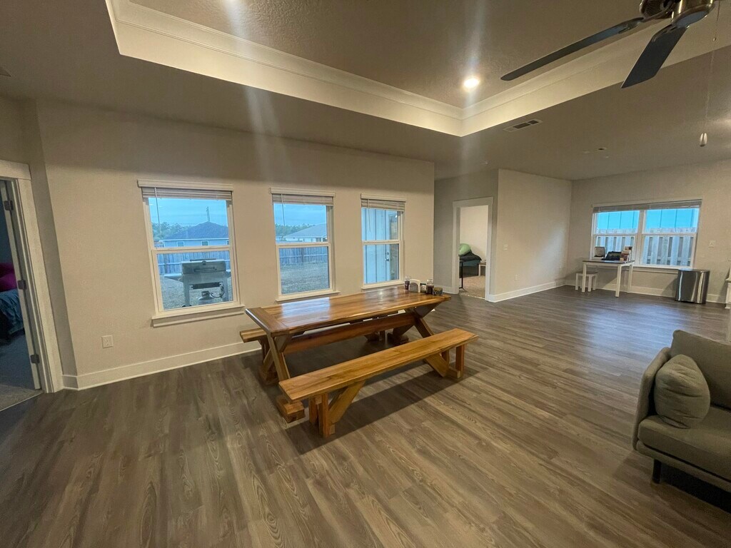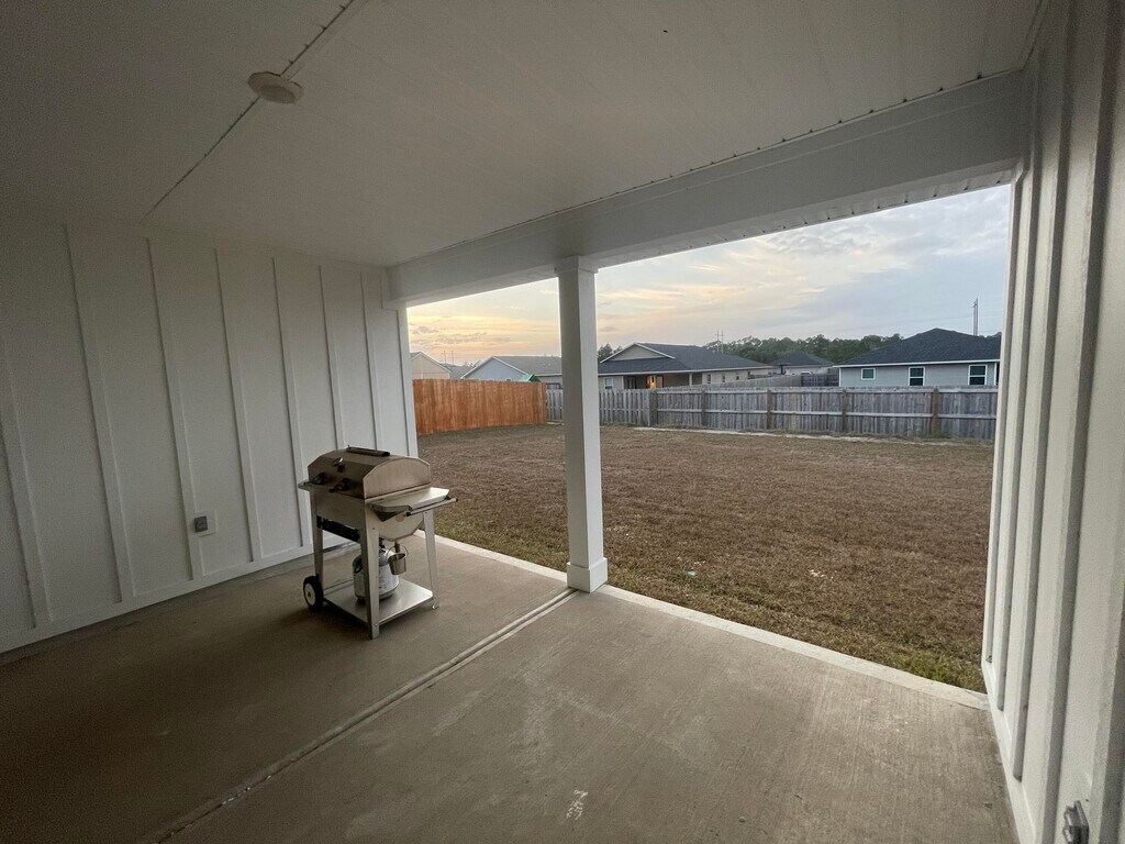 Open & Split floor plan, 4 bedrooms, 3 bathrooms with a covered patio, spacious back yard & 3 car garage with a Community Pool.The home features a large breakfast nook & separate dining area, a very comfortable open design for easy entertaining. Granite counter tops in the kitchen & baths, all stainless-steel appliances, smooth top range, large island bar & a corner pantry. Luxury vinyl in all areas except bedrooms. Bedroom 1 has a large walk-in closet & an adjoining bath that has a double granite vanity, garden tub & a separate shower. Forest Bay Estates has Underground utilities located in a quiet, natural setting with nearby shopping centers, restaurants & boutiques. A Rated Schools & White sandy beaches of Pensacola & Navarre just minutes away.