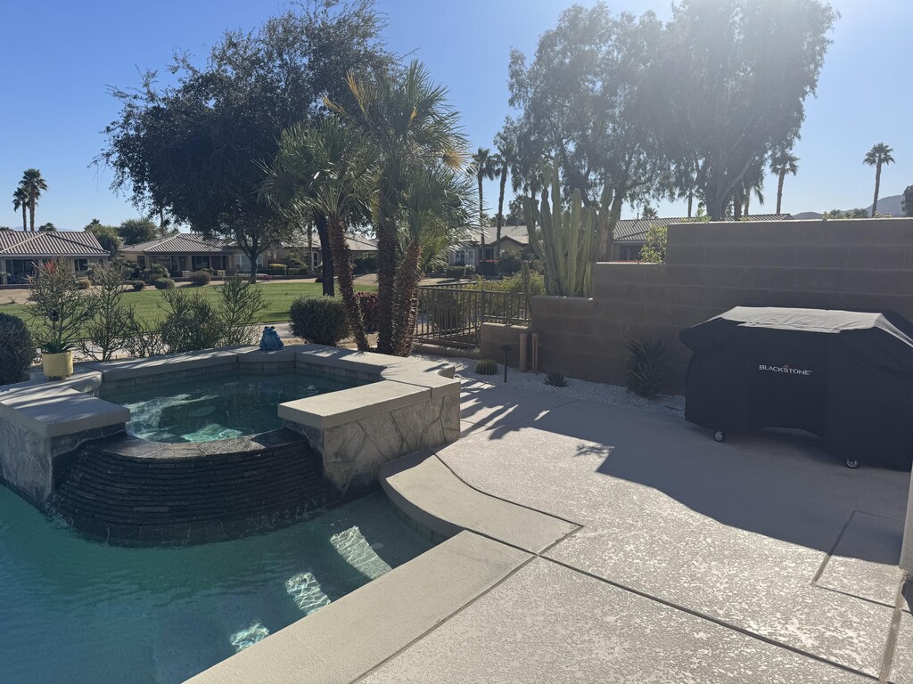 RENTED 12-29-25 thru 4-30-2026. This beautiful Monterey floor plan with a casita is on the golf course,east facing backyard with a pool & spa. The Chef's kitchen is opened to the living area and dining with views of your backyard. This home offers a delightful blend of elegance and comfort. Golf cart is included so you can go to the gym and work out or go play Tennis or Pickleball or just cruise the neighborhood.