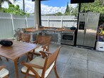 Spacious 3/1 single family home on large lot. Very bright with lots of impact windows and doors. There is an extra room that can be used as a den/office with a separate entrance. Large family room with open kitchen. This home Freshly painted with tiled floors, remodeled bathrooms, kitchen with Stainless Steel appliances & washer and dryer are less than a year. A/C unit is less than 1 years old. All kitchen, hot water and dryer has natural gas from City gas. Water filtration and softening system throughout home 5k value. All windows have modern blinds. 2 Large covered terrace, one terrace is 20'x20' with Full outdoor kitchen, tv and natural gas. Backyard with 2 mango trees, sprinkler system. Hurricane protection with accordion shutters on all windows. Ample parking for RV or boat.