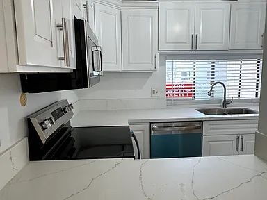 This home is located at 6176 Agee St, Unit 25G, San Diego, CA 92122, and features brand new everything, including the kitchen, appliances, bathroom, bathtub, toilets, and flooring. It is equipped with installed air conditioning for added comfort. The property offers a one-car garage and an additional parking space outside. Laundry facilities are available in the building, though not inside the unit.