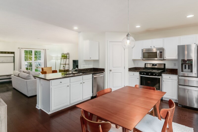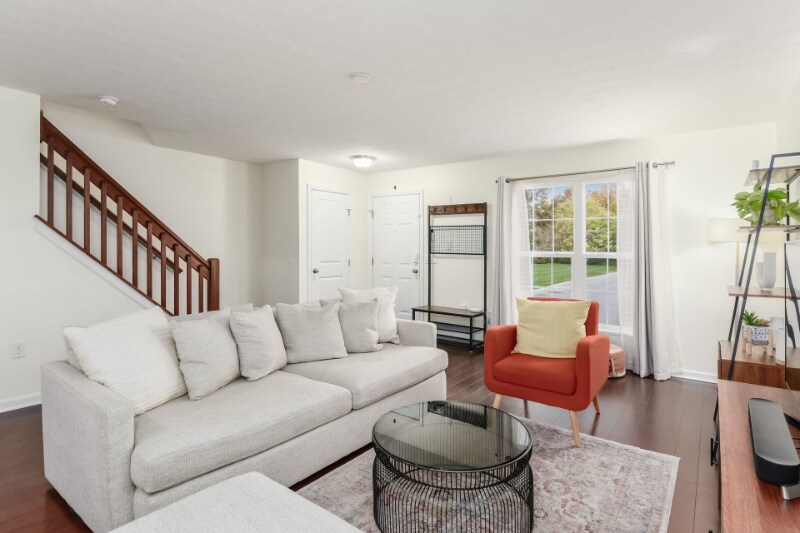 Property Id: 2221267 Welcome to this beautifully updated condo in the sought-after Preserve Crossing community! This popular floor plan offers 2 bedrooms, 2.5 baths, and hardwood flooring throughout the main level. The open-concept kitchen features granite countertops, stainless steel appliances, a walk-in pantry, and an eat-in area, flowing seamlessly into the spacious living room. Upstairs, each bedroom has its own private bath for ultimate convenience. The finished lower level adds valuable living space with a gas log fireplace and half bath perfect for relaxing or entertaining. Enjoy outdoor living in the fenced patio area that leads to a 2-car garage. Located just minutes from Easton, the airport, shopping, and dining, plus community perks like The Goat restaurant, fitness center, 2 pools, and 3 sand volleyball courts! A fantastic home in a vibrant neighborhood don't miss it!