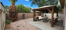 Beautifully renovated home offering a spacious, light-filled floor plan designed for everyday living & effortless entertaining. This pristine, move-in ready home features vaulted ceilings that create an open, airy ambiance. Spacious kitchen is stylish & functional, showcasing soft-close cabinetry/drawers, quartz countertops, marble backsplash & stainless steel appliances. Oversized quartz center island anchors the space, complemented by a butler’s pantry & built-in beverage cooler. Sliding glass doors just off the kitchen open to a private backyard w/low-maintenance landscaping & built-in gazebo, ideal for seamless indoor-outdoor living. Upstairs, the primary suite serves as a relaxing retreat w/ spa-inspired en-suite bathroom & large custom walk-in closet. Durable wood-look tile flooring throughout the main level and bathrooms, plush carpeting upstairs for added comfort. New interior paint and exterior paint completed 6/2023.
