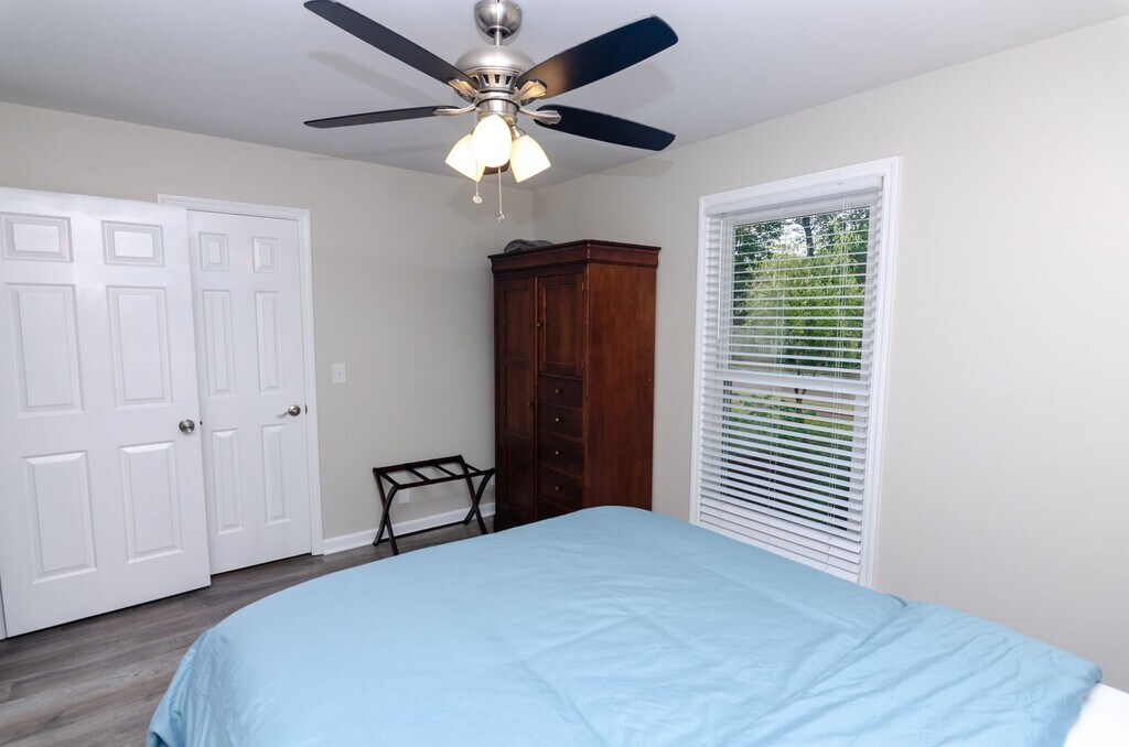 Walk to downtown from this beautifully remodeled home featuring granite countertops and stainless steel appliances in the kitchen. Enjoy updated showers, wood floors throughout, and a spacious great room with vaulted ceilings. The home offers a large primary bedroom with a walk-in closet, a one-car garage, and a great deck perfect for relaxing or entertaining. Located on a quiet cul-de-sac and zoned for Franklin city schools, this smoke-free home is truly move-in ready. ****House can be left fully furnished for $3200 a month****