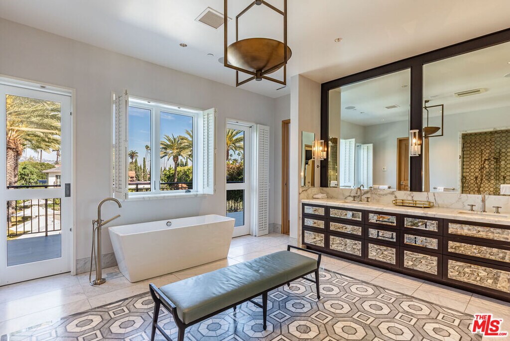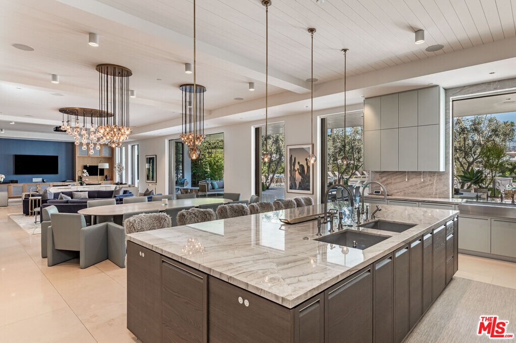 One of the most important properties ever built in the flats of Beverly Hills. Walking distance to the finest shopping on Rodeo Drive. Completed in 2017, this modern Mediterranean villa comprised over 20,000sqft. Soaring high ceilings throughout including a double height entry hall. Impeccable details and open floor plan. Formal living room for grand entertaining. Dining room for 18 guests. Vast gourmet kitchen and adjacent living room opens to the covered terrace and gardens beyond. Large primary suite with living room, office, double baths and closets. Totaling 12 bedrooms each with their baths en-suite, this estate can accommodate many guests. On the lower level, amenities include screening room for 18, wine cellar and subterranean garage for 10+ cars. Full guest house with gym. Grounds include zero edge infinity pool, lawn and sports court. Offered fully furnished and ready for immediate occupancy. MLS# 26659081