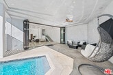 Newly built and strikingly modern, this architectural estate is perched in the coveted Hollywood Hills, offering endless city views from every room, two swimming pools, and a rare 5-car garage! Spanning nearly 5,700 sq. ft., the 5-bedroom, 6-bath residence seamlessly blends bold contemporary design with luxurious amenities. Inside, sleek ceramic floors, soaring wood-paneled ceilings, and expansive accordion glass doors create effortless indoor-outdoor living.At the heart of the home, a chef's gourmet kitchen boasts Italian stone surfaces, a grand breakfast bar, and top-of-the-line Wolf appliances. The open-concept layout flows into a light-filled dining area and spacious living room, where a sparkling pool just beyond sets the perfect backdrop for entertaining.Upstairs, four en-suite bedrooms each open to private balconies, all interconnected to frame sweeping vistas. An attached yet private guest studio with its own entrance provides a versatile retreat, while a second pool crowns the rooftop terraceoffering unforgettable sunsets and a resort-like escape.The primary suite is a true sanctuary, featuring a spa-inspired bath, boutique-style closet and dressing room, and a secluded terrace. Every bedroom is thoughtfully designed as a personal retreat, complete with en-suite baths, walk-in closets, and private balconies.Additional luxuries include dual elevators, a fully integrated smart security system, and a rare five-car garage. Adding even more value, this estate comes with a rehab license already issued. Perfectly positioned just minutes from the 101 freeway, world-class dining, shopping, and entertainment, 6181 Temple Hill is more than a home it's a lifestyle defined by elegance, innovation, and breathtaking surroundings. MLS# 25589403