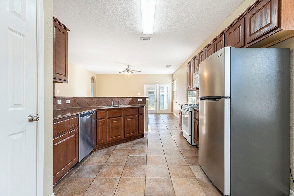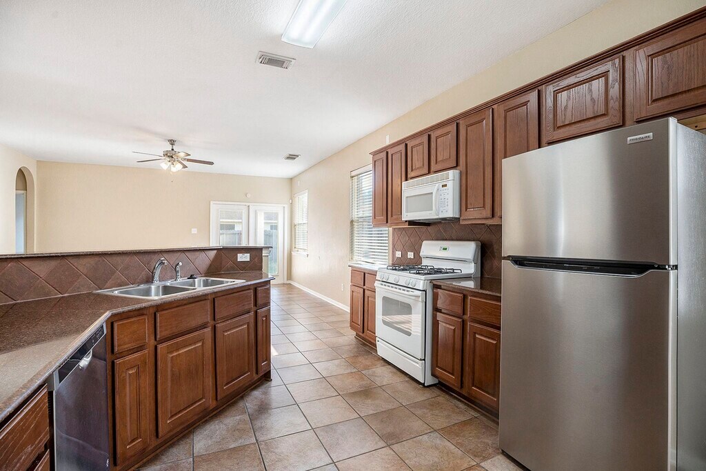 WELCOME HOME to this gorgeous home in the heart of Westover Park! Beautiful open plan with warm designer paint colors,architectural arches,large windows,and French doors to your covered patio. NO CARPET - LVP installed earlier this year. The kitchen has rich wood cabinets,granite countertops,tile backsplash,gas range. Master-planned community,Clear Creek schools,quick access to I45 and FM528,quiet neighborhood with parks,walking paths,and of course,a pool! Come enjoy this home!!! MLS# 88103980
