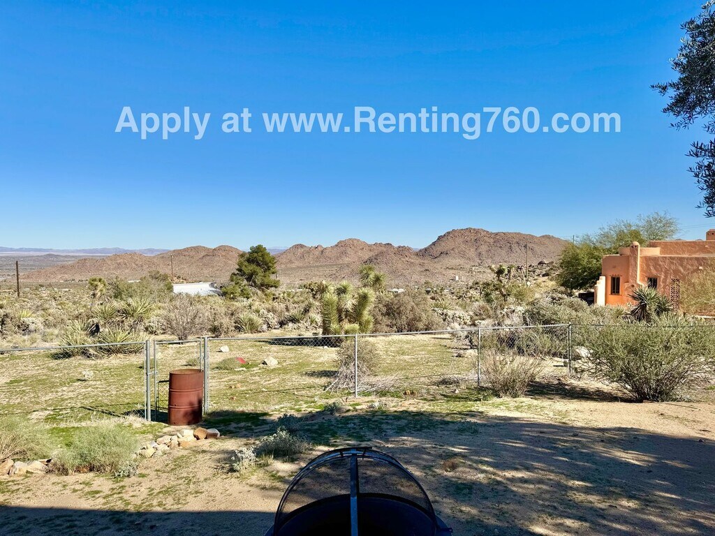 This home is being offered for rent by Southern Cal Property Management in Yucca Valley. SHOWINGS: Please call the office to schedule a showing. 833-RENT-760. Or schedule a self showing directly at our website. APPLY: Please fill out an application directly on our website which is marked in each photo. Applicant criteria/qualifications are listed on the first page of any application and can be found at our website. Southern Cal Property Management lic:02203102 Welcome to the Cozy Cabin On The Hill; a charming 1-bedroom, 1-bathroom home nestled in beautiful Joshua Tree! This delightful property boasts a fully equipped kitchen with a washer and dryer, ensuring all your laundry needs are met with ease. Step outside to a fully fenced backyard, offering a secure space for outdoor activities while you soak in the incredible views that surround this home. Its prime location is just a stone's throw away from the vibrant downtown area, offering a variety of dining, shopping, and entertainment options. Plus, with the renowned Joshua Tree National Park nearby, adventure is always within reach. Experience the perfect blend of comfort and convenience at the Cozy Cabin On The Hill!