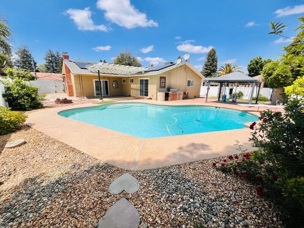 WATCH THE VIRTUAL TOUR! WELCOME to this charming 3 bedroom, 2 bathroom home located in the desirable area of Fresno, CA. This corner lot property boasts a large swimming pool perfect for enjoying the warm California weather with pool service included! The house also features RV parking with hookups, making it convenient for those who enjoy traveling in their recreational vehicle. The home is equipped with solar panels, helping to reduce energy costs and a water softener. Inside, you will find stainless steel appliances in the kitchen and laminate flooring throughout the living spaces. Don't miss out on the opportunity to make this house your new home! $2750 a month rent plus $2750 security deposit. One pet allowed with added security deposit. NO SMOKING. Don't let this pass you up! Applications at website (). 1 year lease required. Available early November Visit for more info on this property, other rentals, and pictures of this great property or call Borelli Real Estate Services (Property Management Company) 1.