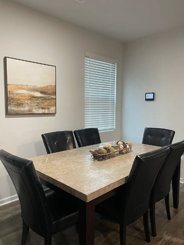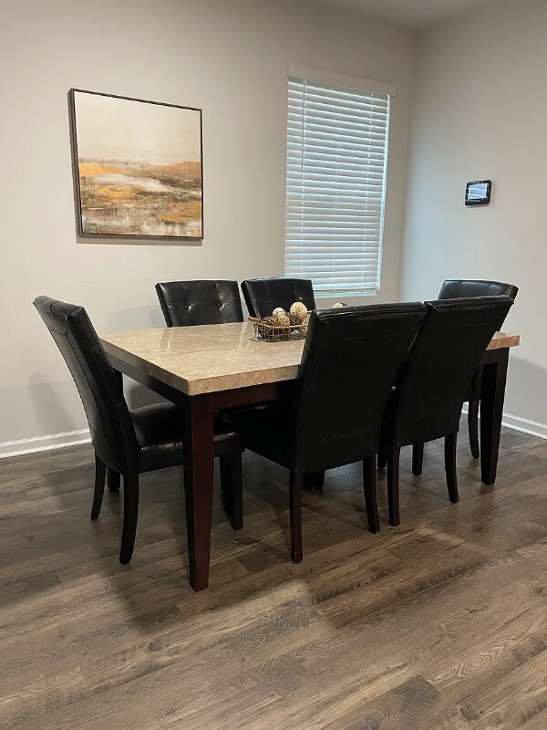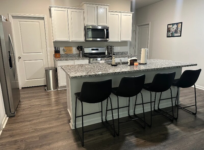 Property Id: 1849302 Bedrooms: 5 spacious bedrooms with comfortable beds. -We can transform a bedroom into an office space upon request. Bathrooms: 3 full-sized modern bathrooms with updated fixtures. Living Space: Cozy living room with a couch, fireplace, and coffee table. Kitchen: Fully equipped kitchen with a refrigerator, gas oven, microwave, dishwasher, bar stools, pantry, and ample cabinet space. Dining Area: A dining table with seating for six. Outdoor Space: Backyard with a patio area and seating. Parking: Driveway, garage, and additional street parking available. Laundry: In-unit washer and dryer for convenience. Utilities Included: internet, electricity, water, trash, pest control Location: safe and secure neighborhood, 10 minute drive to downtown North Augusta *furniture in images is subject to change *rent is up for discussion, open to rent w/o furnitue and/or utilities, etc.