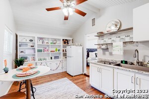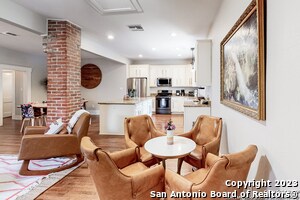 Experience the heart of San Antonio in this historic, one-of-a-kind, 2346sqft FULLY FURNISHED home in the famous King William District! This large, elegant, two-story house comes with a detached 374sqft CASITA featuring its own kitchenette and full bathroom. Perfect for big families or groups of friends, it offers five bedrooms including casita, plus a pull-out couch in the living room and everything needed to be move-in or rental-ready. You'll have plenty of places to hang out, including the large, open living and dining area with tons of seating and a Smart TV, the cozy entry room, the large main bedroom suite with private office, comfortable bedrooms, or the casita which has a high-top and stools for intimate dining. Enjoy some fresh air under the covered patio, on the lounge chairs in the yard, or on the front porch while cooking out on the propane grill. Enjoy all that nearby Southtown and Blue Star Arts Complex have to offer with assorted restaurants and shops. You're down the street from the Riverwalk and Eagleland Drive Trailhead, a 15-mile pedestrian loop that takes you to all five Spanish missions and long, scenic stretches of the San Antonio River. Come see why this is where you or your tenants can enjoy serenity yet still be near the heart of the city!