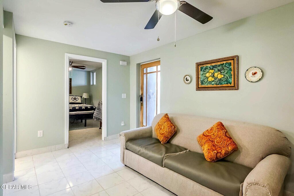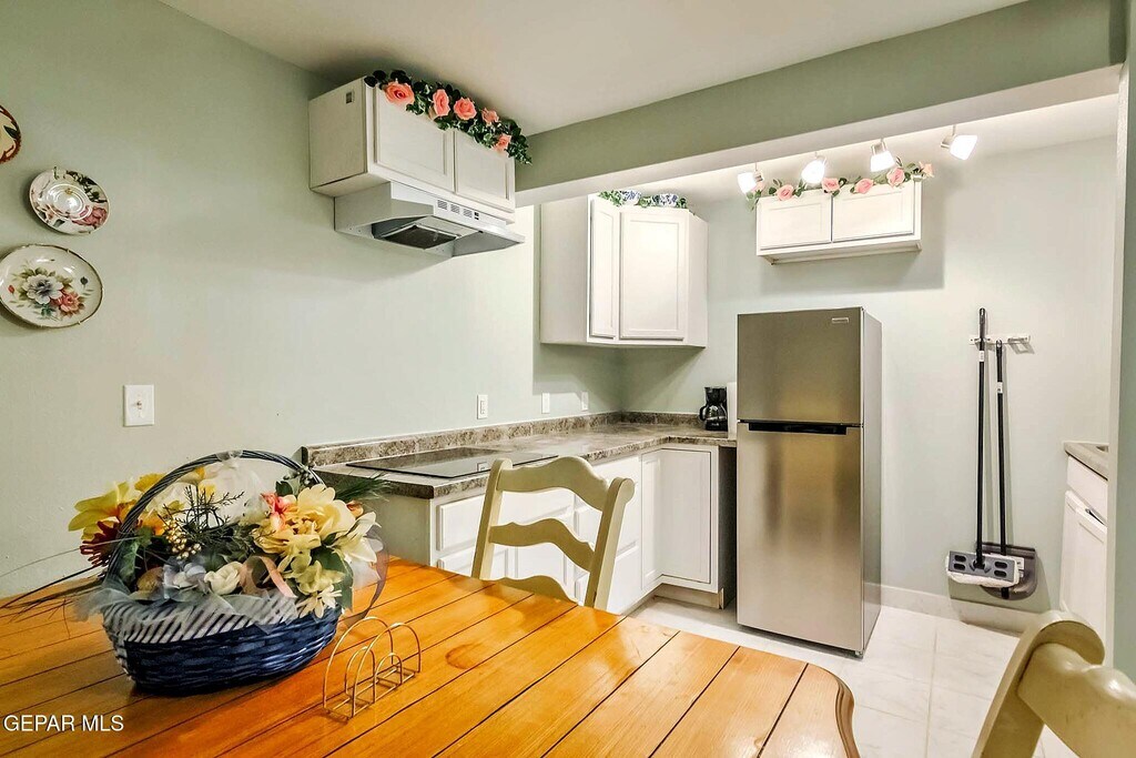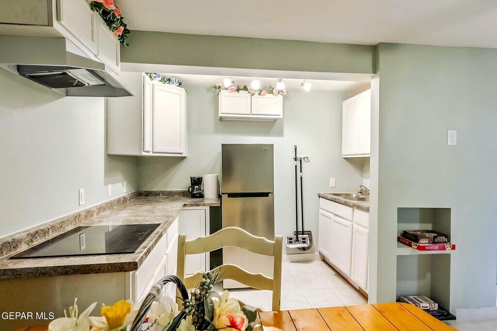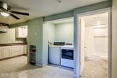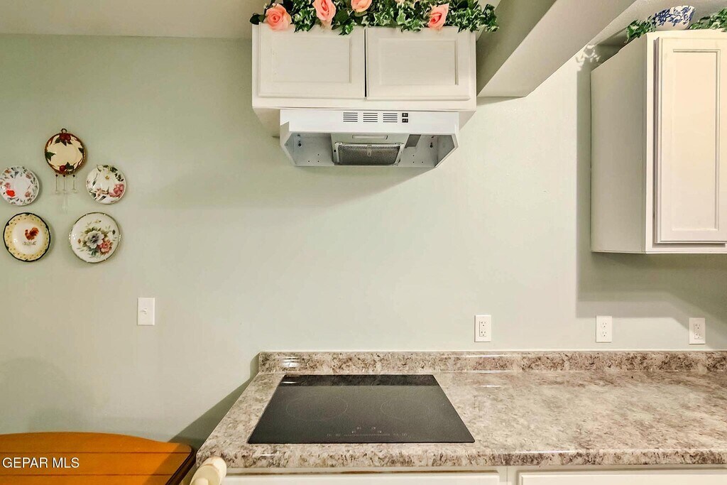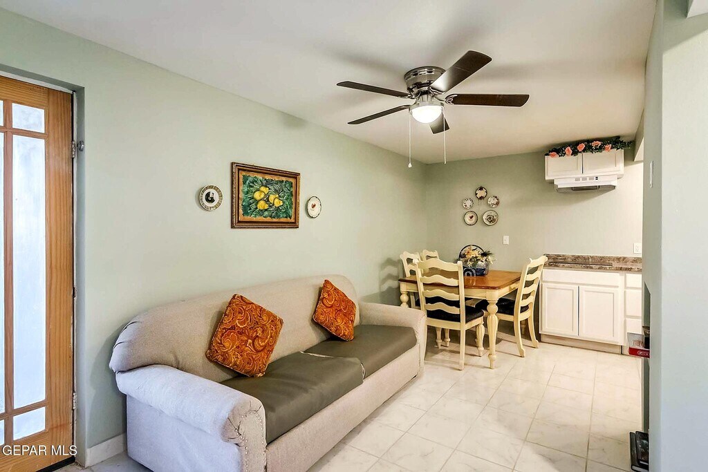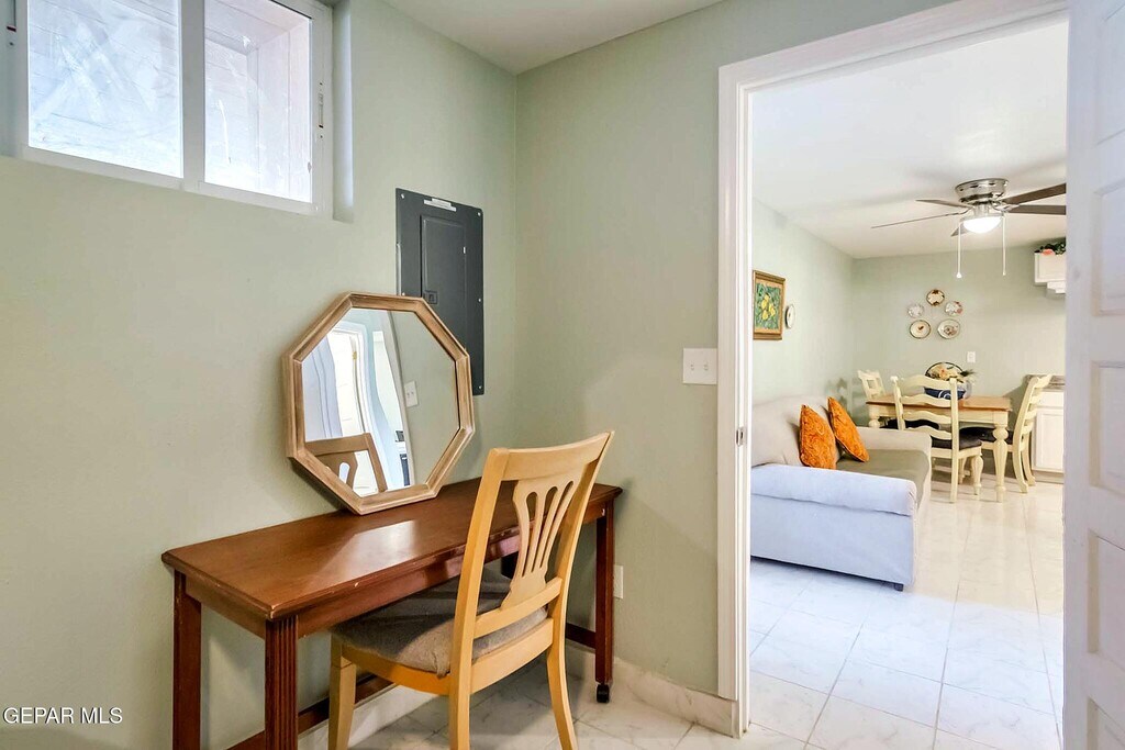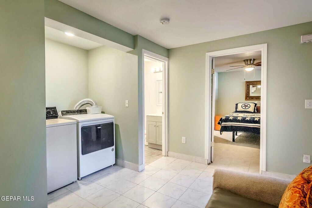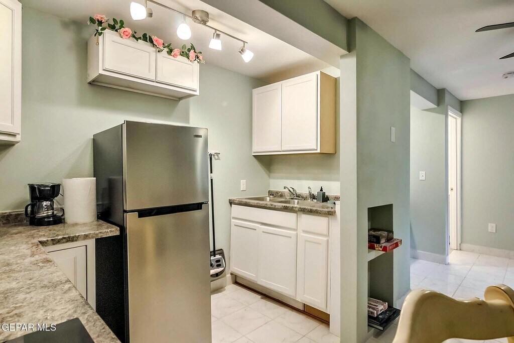 Inviting 1-bedroom,1-bath unit situated in a secure,gated brick complex just a short distance from The University of Texas at El Paso. This single-story apartment highlights a practical open-plan design with a fully equipped kitchen showcasing white cabinets,laminate countertops,and a full-size stainless steel refrigerator. Natural light enhances the fresh interior palette,while ceiling fans promote comfort throughout. A dedicated laundry zone includes a Whirlpool washer and dryer. The bathroom offers a modern aesthetic with a tiled tub surround and recessed lighting. Located near Scenic Drive Overlook and downtown cultural spots. Deposit-Free Renting service to Obligo qualified renters,fees may apply.