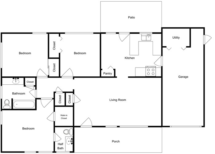 Beautiful Ranch 1 story 4 bedroom/2 bath home featuring a rocking chair worthy front porch, large sunlit windows, and a 1 car garage. Home features a spacious open floorplan, a updated kitchen with ample counter and cabinet space, with all updated appliances. Large bedrooms with spacious closets and a large outdoor area great for entertaining complete this home. Visit today! This property allows self guided viewing without an appointment. Contact for details.
