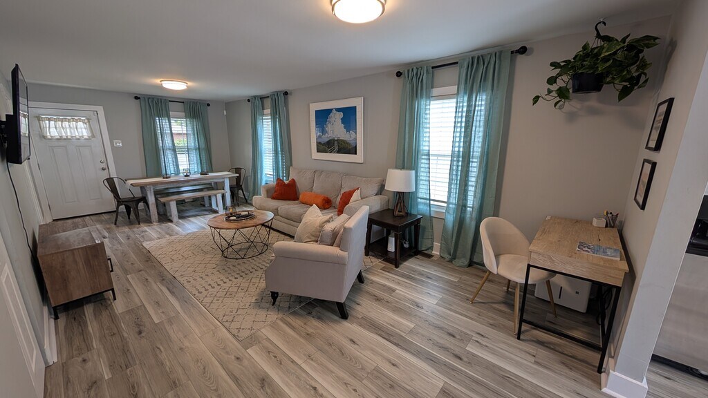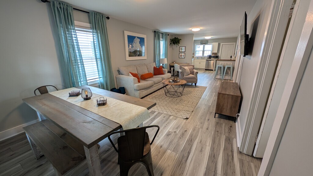 Welcome to our charming little home, located mere steps to the newest up and coming Cargo District and just 5 minutes from the Riverfront! A true hotspot for locals and travelers alike! From Boutique shopping to plants and tattoos! You will find yourself amidst creative art and pottery classes- private gyms, studios and tons of restaurants, live music, nightlife and other entertainment! Needless to say, you wont find yourself bored. This cozy and newly renovated fully furnished 2-bedroom, 2-bath home offers the perfect blend of comfort, convenience, and relaxation! Located in a peaceful neighborhood. The kitchen is fully equipped with everything you need for preparing meals or skip all the cooking and cleaning and try one of the MANY local restaurants within walking distance. The master suite has a king size bed and attached bath for privacy! While the guest room offers a queen bed and attached bathroom. There is a working nook with desk & chair for those who work hard and play hard! SmartTV capabilities are available in the living room and several puzzles to enjoy on those rainy, cold days! Date Available for move in: Dec 15th 2025. $2,100/month rent. $1,500 security deposit required. Please submit the form on this page or contact Shelby at to learn more. This property is managed by a responsible landlord using Avail landlord software.