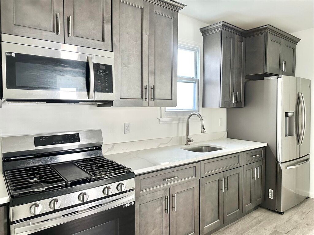 This recently updated 3 bedroom apartment offers a bright, functional layout with natural light and modern finishes throughout, and is conveniently located near bus routes, neighborhood shops, restaurants, and everyday amenities. Recent updates include new vinyl flooring and an eat-in kitchen with new cabinetry, updated countertops, and stainless steel appliances, including a gas stove, French-door refrigerator with bottom freezer, and an over-the-range microwave with built-in venting and cooktop lighting. The bathroom features tiled flooring and a new vanity. Additional highlights include a shared fenced yard perfect for relaxing or everyday use and forced-air gas heat for efficient year-round comfort. 18 Months Lease 24 Months Lease Garbage included Sewage included