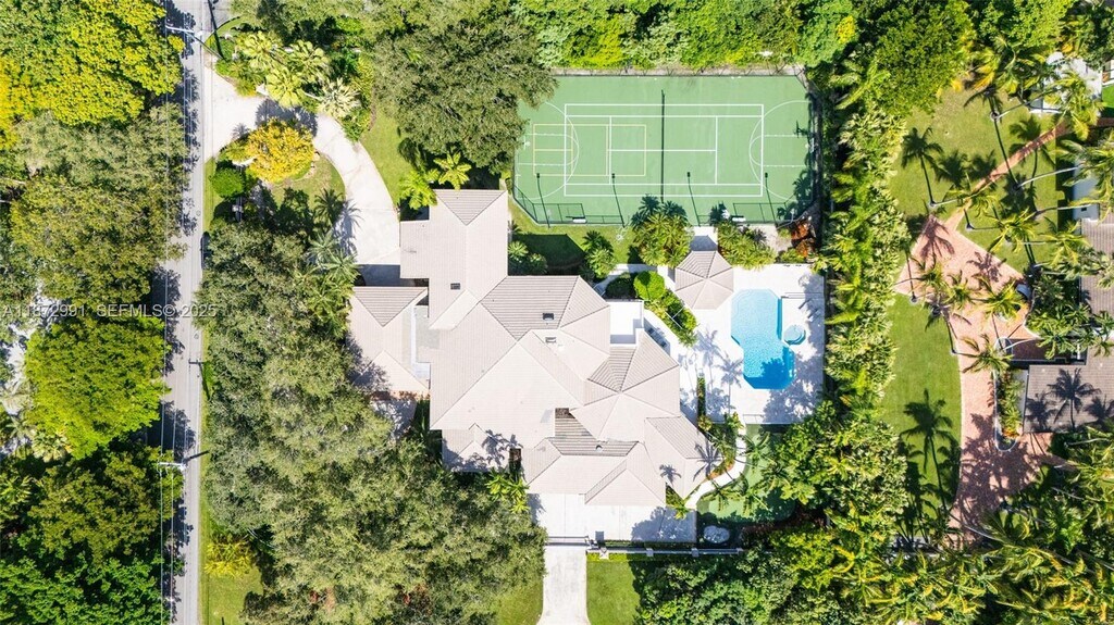 A tennis lover's dream! Resort style living in this magnificent 2 story Pinecrest Estate featuring 7 bds & 6.5 bths with a pool, jacuzzi, tennis/basketball court with lights, gym, putting green, & 4 car garage. Great family home perfect for entertaining! The first floor boasts a grand foyer, soaring ceilings, library/study, formal dining, chef’s kitchen with breakfast nook, family/media room with pool table and bar, home gym, 2 en-suite bds, and guest bath. Outside, enjoy a covered BBQ area, sparkling pool, jacuzzi, tennis & basketball court, and putting green. Upstairs, the primary suite features a private terrace, dual walk-in closets, and spa-inspired bath, plus 3 additional bds and 2 bths. Close to top-rated schools, shopping, dining, & entertainment. It's not Miami, it's Pinecrest! MLS # A11872991