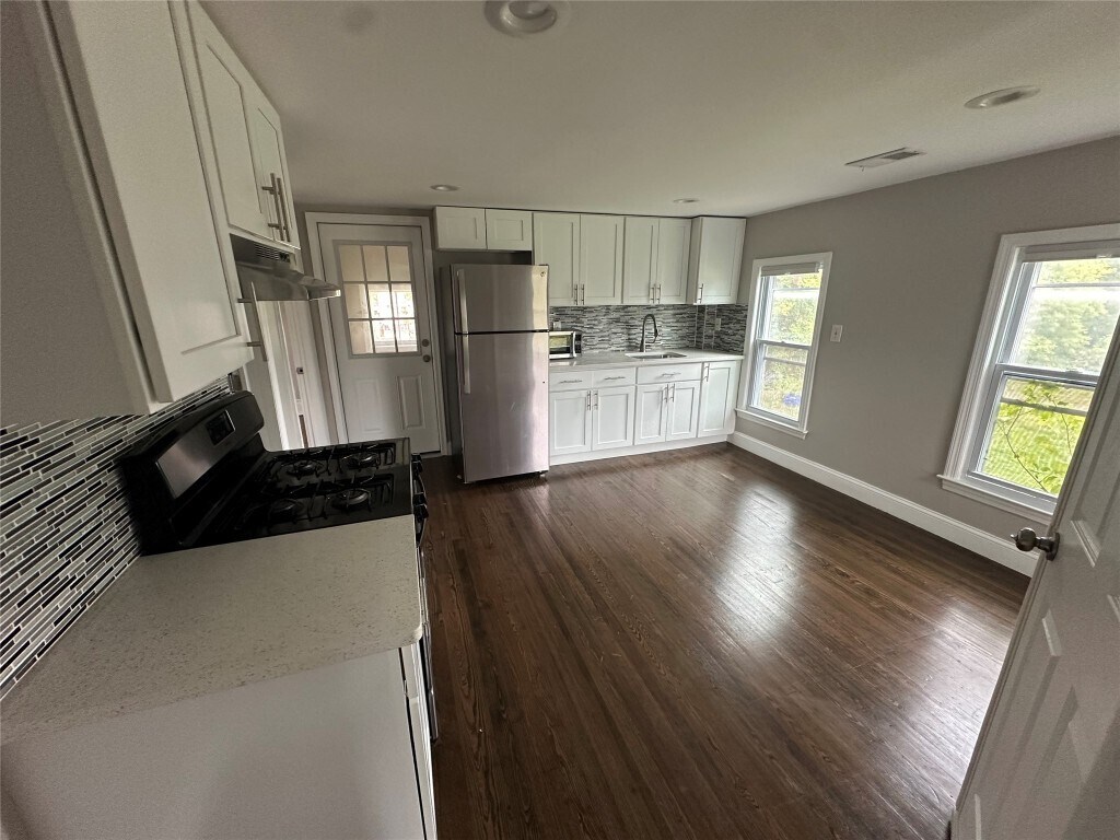 Cozy and bright,this charming 2-bedroom,1-bathroom apartment is ready for you to move in. Hardwood floors and recessed lighting flow throughout the entire home,creating a warm and inviting atmosphere. The newly updated kitchen features modern white cabinetry,stainless steel appliances,and a beautiful tile backsplash. The bathroom has also been renovated with stylish tile and a new vanity. This rental is conveniently located close to amenities.