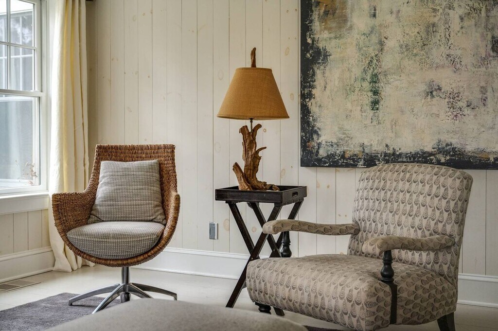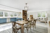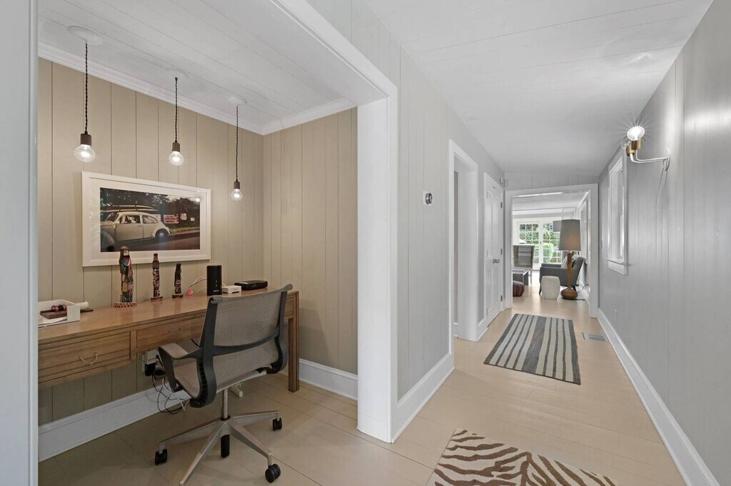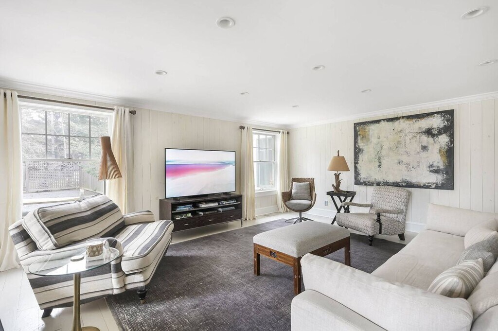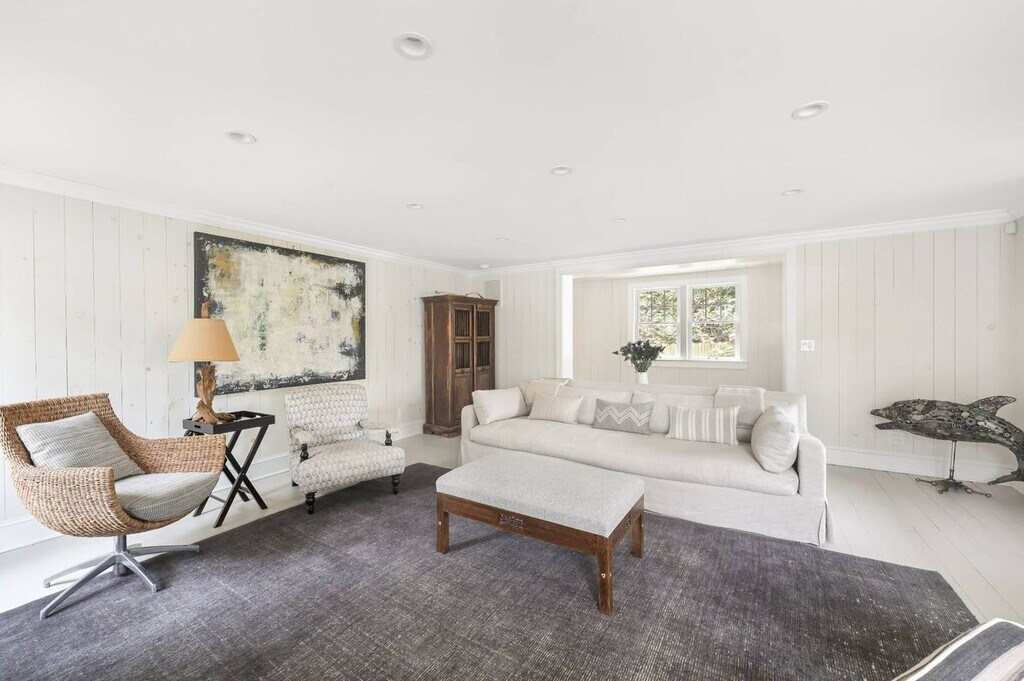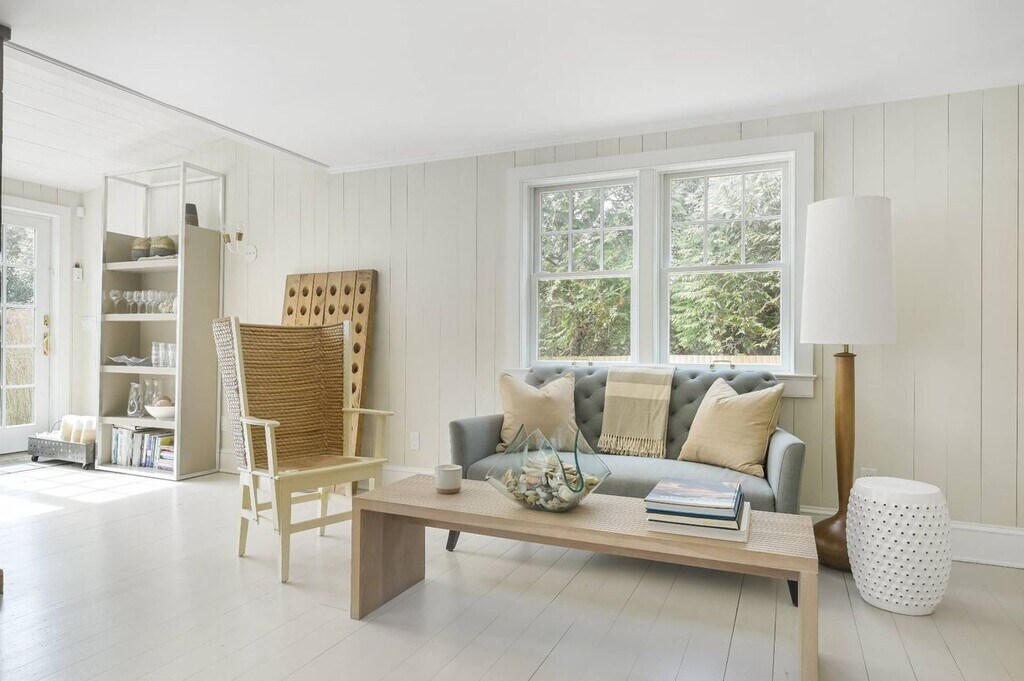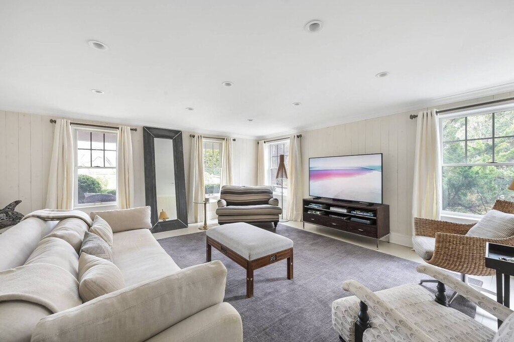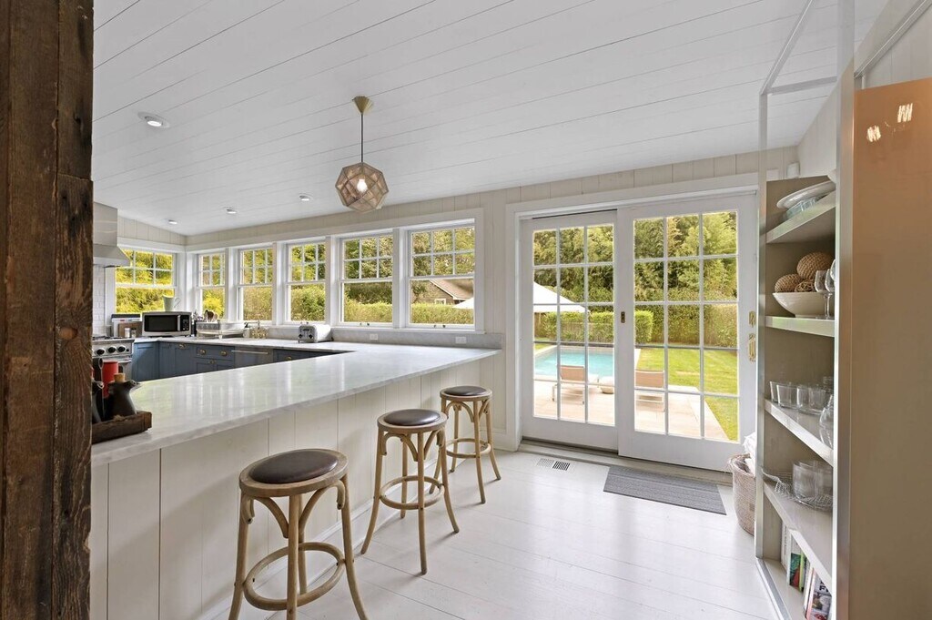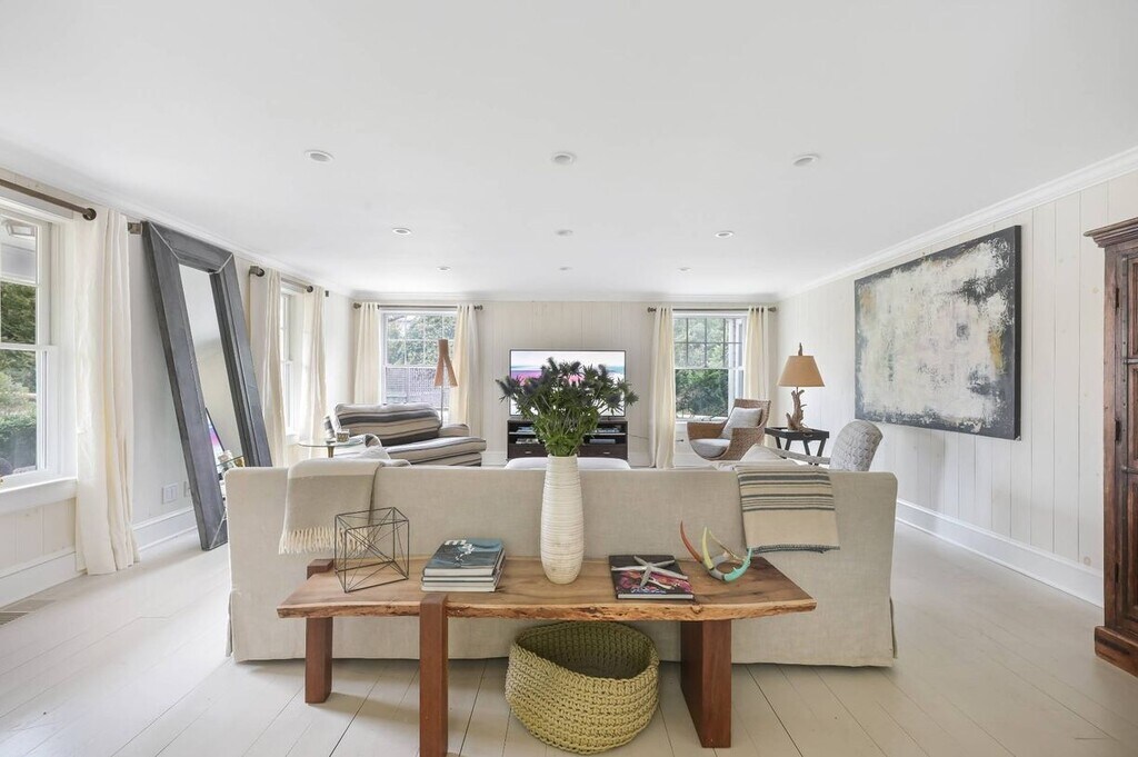 Renovated and expanded designer's own 4 bedroom (two ensuites) [a second-floor primary suite (King size bed) and another ensuite bedroom with full bath on the first floor] (plus two bedrooms on the second floor that share a newly renovated bathroom). The stylish home includes a finished lower-level TV/playroom with double egress, and a total of 3.5 bathrooms (powder room on the first floor). Large open eat-in country kitchen leads to a blue stone patio that enjoys southern exposure as well as a heated (saline) gunite pool. The wood-burning fireplace and central AC complete this modern farmhouse. Just minutes to the train station; a quick ride to the ocean or bay beaches, plus the shops and Jitney in the Village of Amagansett. Landlord will consider a year round rental commencing September 2026 - as well as off season months. [[Rental Registration # 25-855]]