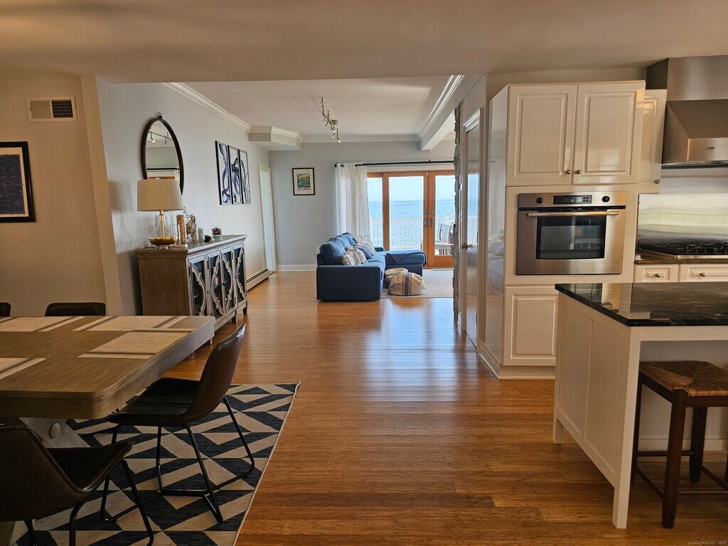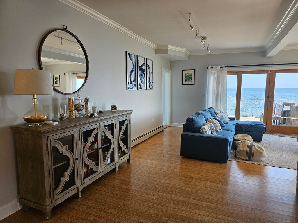 Call for Availability - Spend your summer soaking up the sun at this exceptional, fully furnished waterfront retreat located on one of Cosey Beach Ave's most sought-after sandy lots. Enjoy direct access to your own private beach-perfect for morning walks, afternoon surf sessions, or unwinding with a sunset view over Long Island Sound. This meticulously maintained 5-bedroom, -bathroom home features a flexible layout ideal for guests or extended family, including a private third-floor in-law suite. The open main floor boasts stunning solid bamboo floors and hurricane-proof glass sliders that open to a spacious deck with an electronic awning, designed for effortless indoor-outdoor living and entertaining. The chef's kitchen is outfitted with high-end stainless-steel appliances and granite countertops, and the home comes fully furnished with comfortable, stylish decor. Additional amenities include an oversized two-car garage, generous storage space, and a private parking area to accommodate visitors. Whether you're here to relax, entertain, or simply escape, this coastal gem has everything you need for an unforgettable summer stay. MLS# 24115619