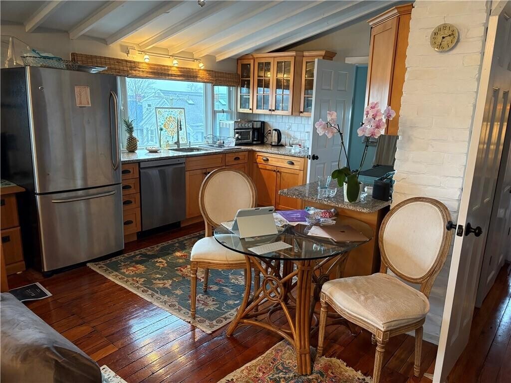 The rental located in Newport,RI 02840 is a unique loft-style third-floor unit with 2 bedrooms and 1 bathroom. This charming space features exposed beams that add character and charm to the living area. The hardwood floors throughout the unit give it a warm and inviting feel. The kitchen boasts elegant granite countertops,ample cabinet space for storage,and high-end stainless steel appliances,making it a functional and stylish area for cooking and entertaining. The open layout of the loft creates a spacious and airy atmosphere,perfect for modern living. One of the highlights of this rental is the large outdoor private deck,offering residents a tranquil outdoor space to enjoy the views of the harbor and soak up the natural beauty of the surroundings. Additionally,the convenience of parking adds to the appeal of this property,providing ease and accessibility for residents with vehicles. Overall,this loft unit combines modern amenities with classic architectural details,creating a comfortable and stylish living space in the heart of Newport for this winter.