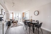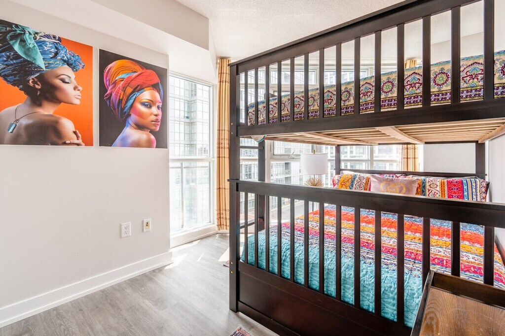 Feel at home in this modern 2-bedroom, 2-bathroom unit in the heart of the downtown entertainment district on a high floor. This comfortable suite has everything you need. The fully functional kitchen includes tea, coffee, a kettle, a coffeemaker, and a toaster. A washer and dryer are available with supplies. The 2 bathrooms include towels, shampoo, conditioner, body wash, a hair dryer, and other toiletries. Parking is available at $20 per night, please request parking ahead of time. A travel crib (for babies 0-18 months) and bed rails are available for $10 per item per night, please book in advance. Pets are allowed in the apartment with a fee of $20 per night for 1 pet, please confirm the opportunity prior to booking. Enjoy easy access to the subway, Union Station, Lake Shore, and the Gardiner Expressway. The apartment is steps away from the CN Tower, Rogers Center, Union Metro Station, the financial district, bars, restaurants, and Sobeys Grocery Store. Every guest must provide their personal information prior to check-in. The minimum age for booking is 25 years, but for reservations of 7 nights or more, check-in is possible from the age of 18. Registration Number: STR-2503-FHVPPP [SI]