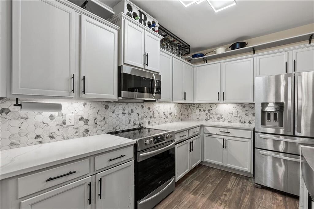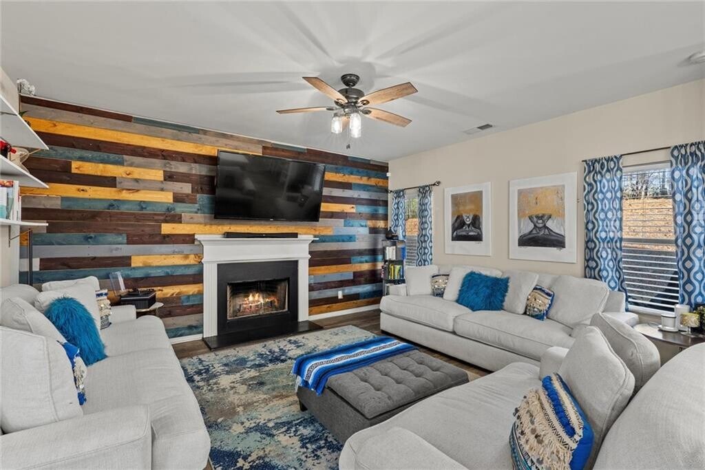Welcome home to this beautifully updated 4-bedroom,2.5-bath residence that blends modern upgrades with everyday comfort. A covered front porch sets a welcoming tone,perfect for relaxing mornings or evenings. Inside,the open-concept living space features updated flooring throughout and a striking feature wall with a fireplace,creating a warm yet contemporary focal point. The sleek kitchen was thoughtfully designed to impress with a waterfall island,stylish backsplash,and stainless steel appliances. Upstairs,the spacious primary suite offers a true retreat with ample room,a spa-like bathroom featuring a double vanity,separate tub and shower,and an oversized walk-in closet. Three additional bedrooms provide flexibility for guests,a home office,or additional living space. The home is offered unfurnished and includes a washer and dryer for added convenience. Available for just $2,100 per month,this home delivers space,style,and modern finishes in one complete package.