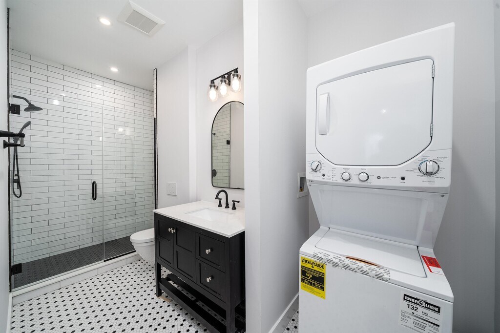 Make this property yours, enjoy a beautiful brand new renovation, followed by Samsung gas range stove, fridge, and microwave. LED recess lighting, modern light fixtures, make this home bright and elegant. Subway backsplash enhances the quartz counter tops, followed by satin shaker cabinets. The convenience of having a full size washer and dryer in unit makes it even more desirable. With a great location in the heart of Journal Square, getting around the city is easier than ever. PATH train 1 block away, surrounded by dining, shopping, and activities all around. Enjoy the urban life with the added convenience.