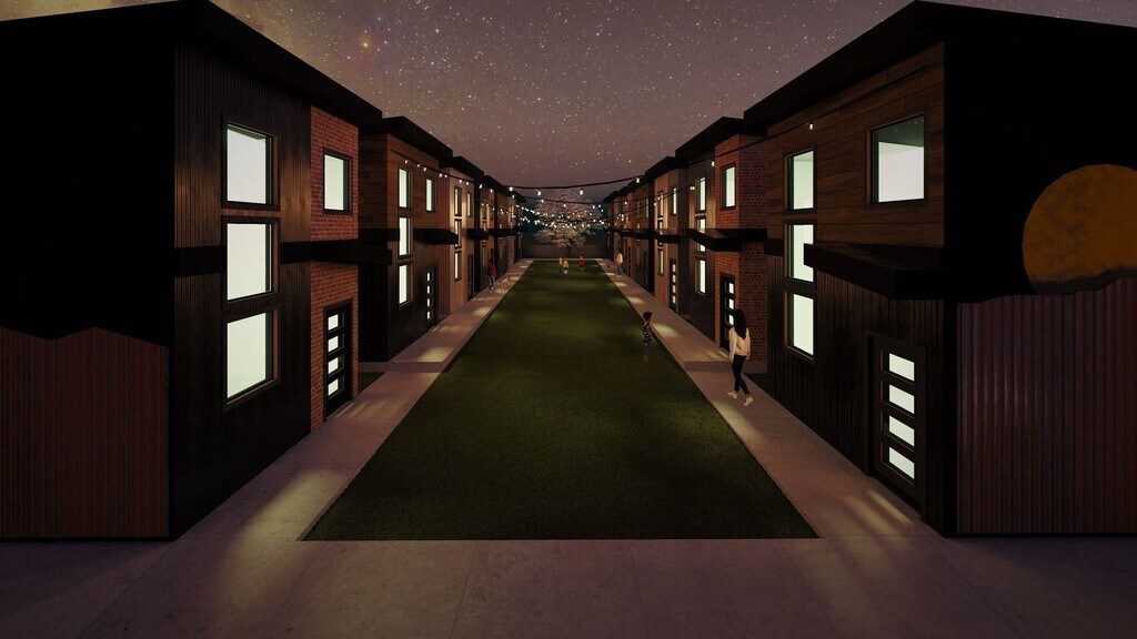 Exterior: Bold black corrugated steel siding creates dramatic contrast with warm LP SmartSiding painted in SW Turkish Coffee, unified by crisp SW Iron Ore trim. This model makes a contemporary statement with its strong geometric lines and rich color palette. Interior: Industrial chic featuring Steel Gray Leathered granite countertops with striking Kingston Charcoal Black cabinets. Beautiful Suva Oak flooring flows throughout the living spaces. The kitchen showcases authentic brick veneer backsplash which flows into the bathroom flooring. Sleek matte black fixtures and hardware create a cohesive, modern aesthetic throughout. Steel Hollow: Modern Industrial Cottage Living Welcome to Steel Hollow, a distinctive collection of 16 brand-new cottage homes that redefine compact living through thoughtful design and industrial-inspired aesthetics. These uniquely crafted 459 square foot residences prove that luxury and functionality can thrive in smaller spaces. Architectural Excellence Steel Hollow features three distinct architectural styles, each showcasing a sophisticated blend of modern materials including rich brick, warm wood siding, and sleek corrugated metal cladding. The community's industrial charm is enhanced by carefully coordinated black gridded windows and thoughtfully placed accent elements, including striking circular design features that add visual interest to the streetscape. Built to Last Every aspect of Steel Hollow is constructed with durability and longevity in mind. From the foundation up, these homes feature premium materials and superior craftsmanship that ensure years of comfortable, low-maintenance living. Interior Features That Impress Spacious Design Elements: - Soaring 16-foot ceilings create an unexpectedly grand feel - Abundant windows flood each home with natural light - Upstairs loft space provides flexible options for a second bedroom, home office, or an additional living area Premium Finishes Throughout: - Cork-backed super-sized vinyl plank flooring with authentic wood grain texture (9" x 72" planks) - Granite countertops with stainless steel sinks and elegant tile backsplashes - Luxury tile flooring in bathrooms with matching granite vanity tops - High-quality paint that hardens to an easy-to-clean enamel finish - Solid core three-panel interior doors with steel four-panel glass exterior doors Modern Conveniences: - Brand new (full sized) stainless steel appliances with mounted microwave - In-unit stacked washer and dryer - Full-sized hot water heater - Oversized 60-inch ceiling fan for optimal comfort - Luxury black vinyl windows with decorative grids Energy Efficiency & Comfort Steel Hollow homes are designed with your budget in mind. Extreme insulation levels, combined with new electrical systems, plumbing, and roofing, ensure utility bills stay remarkably low while maintaining year-round comfort. The robust 5/8" sheetrock construction provides superior sound dampening and thermal performance. Community Amenities - Dedicated off-street parking for every residence - Thoughtfully landscaped common areas with mature trees - Well-lit pedestrian walkways connecting the community - Modern community signage and wayfinding The Steel Hollow Difference These aren't just small homes they're carefully engineered living spaces that maximize every square foot while delivering the quality finishes and features you'd expect in much larger residences. The combination of industrial materials, modern design, and premium amenities creates a unique living experience that's both stylish and practical. Steel Hollow represents a new standard in compact living, where quality construction meets innovative design to create homes that feel both substantial and sophisticated. Welcome to your new community where modern living meets industrial charm.