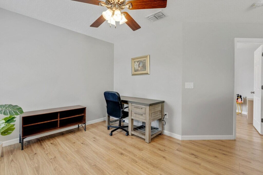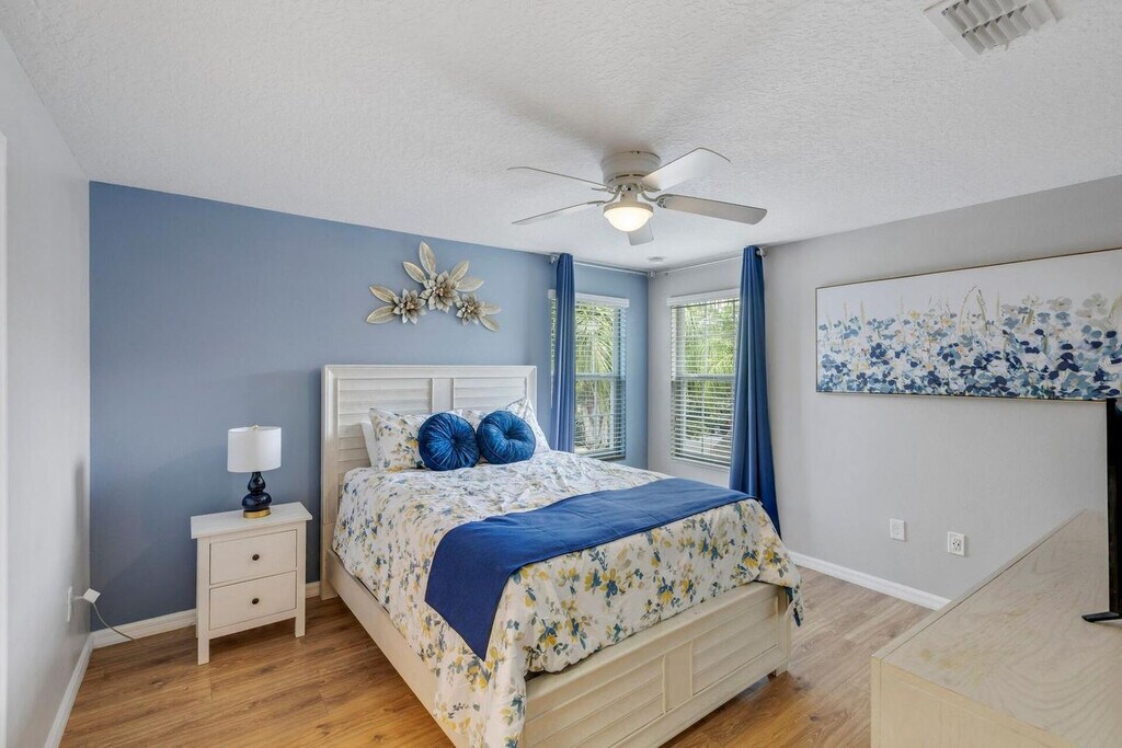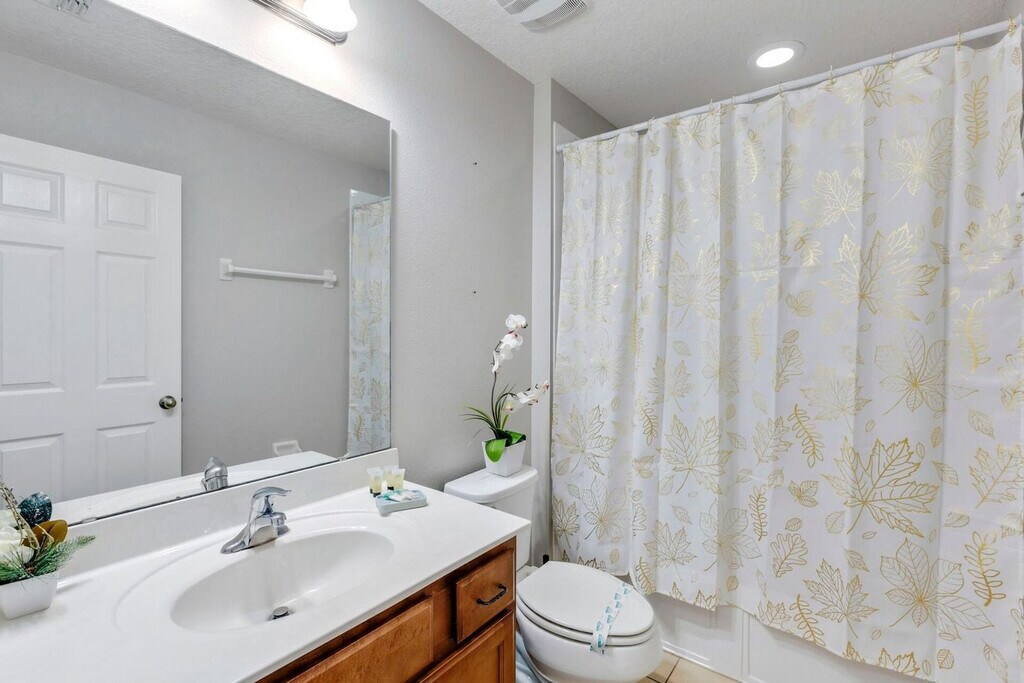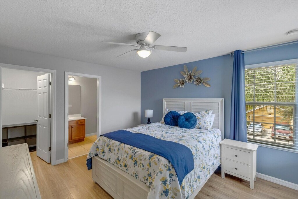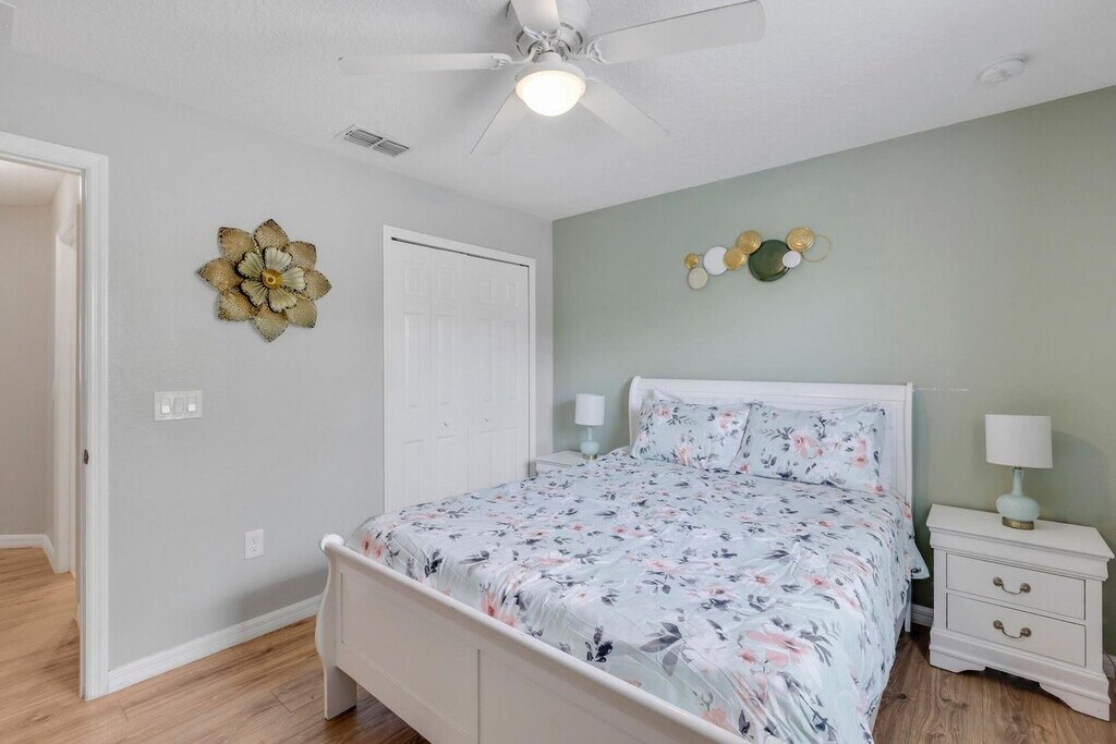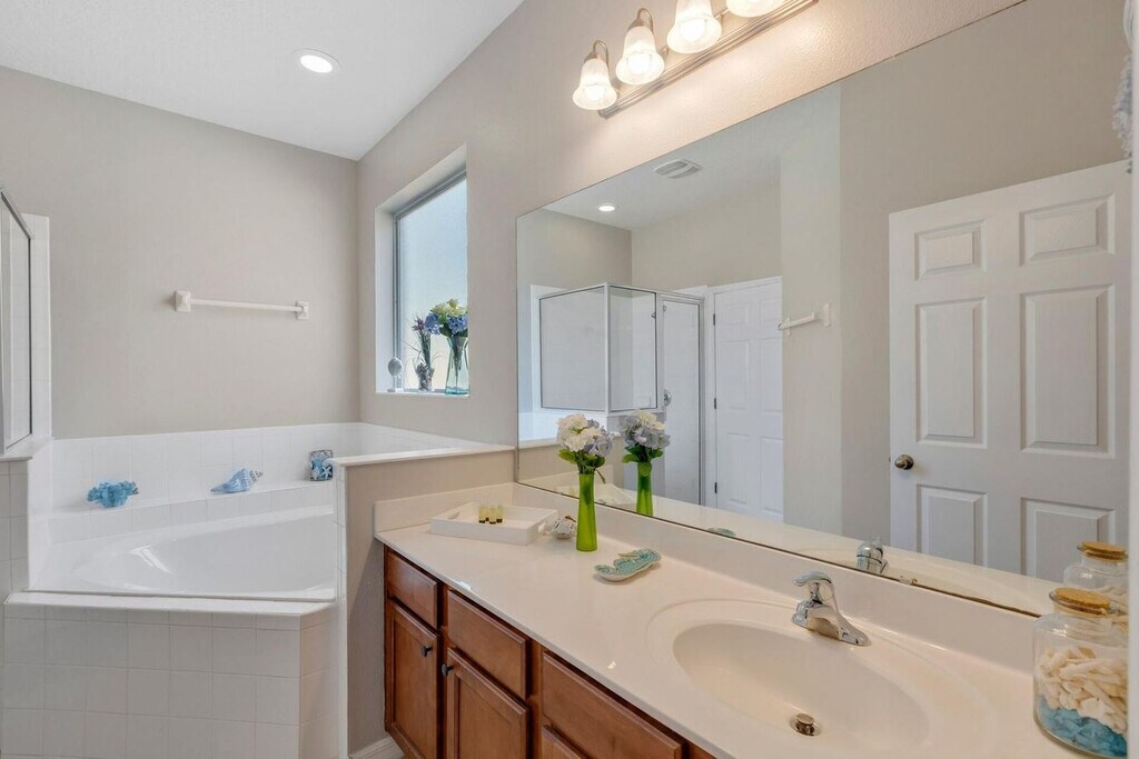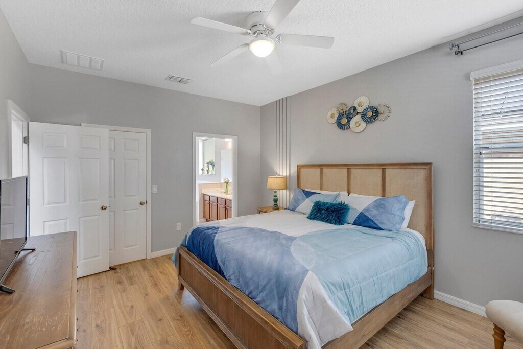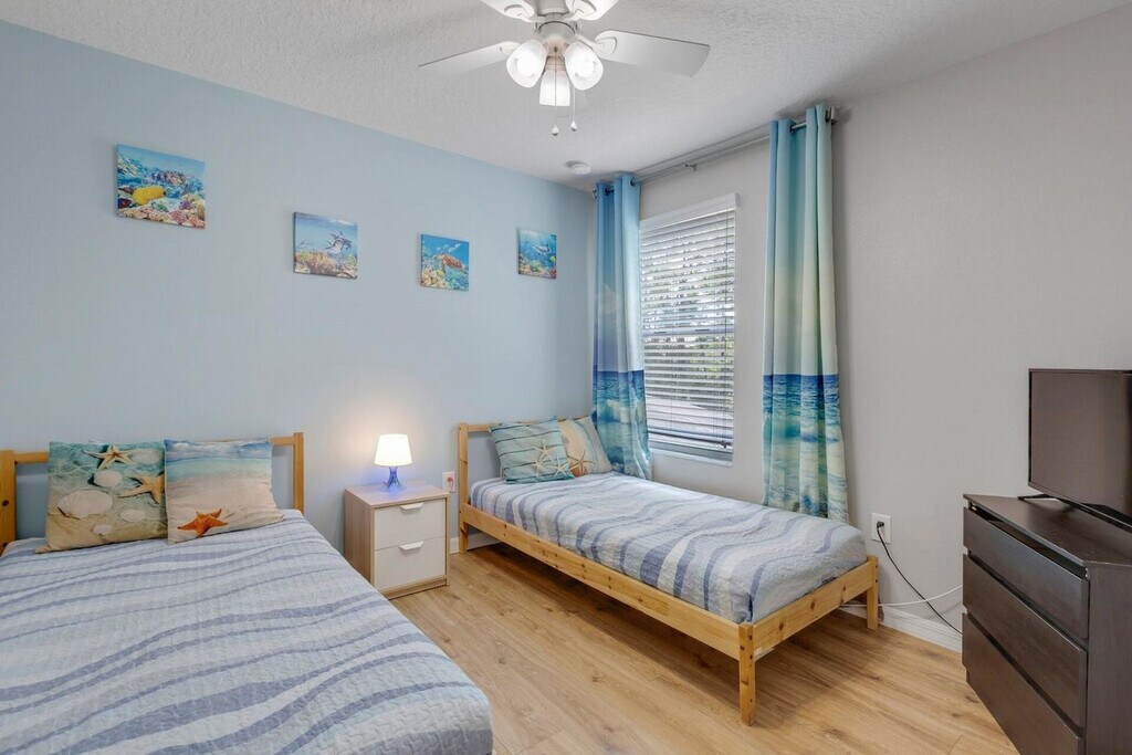 Feel at home in this peaceful 6-bedroom villa located in the gated Watersong Resort. This spacious home features 4.5 bathrooms and accommodates up to 12 guests, offering the perfect mix of relaxation and entertainment. This villa features a private screened pool with a nature view, a fully equipped kitchen, an outdoor BBQ grill, and smart TVs in every room. High-speed Wi-Fi and self check-in with smart lock are included. Perfect for families, executives, or long-term stays, this home is located in Davenport, Florida, and offers access to resort amenities, including a clubhouse with a fitness center, a large pool, a spa, a playground, and volleyball and basketball courts. Disney is 13 miles away, Universal is 25 miles away, SeaWorld is 20 miles away, and Orlando Airport is 33 miles away. Parties are fully prohibited. Quiet time is from 10 PM to 6 AM. There is a $300 penalty for smoking on the property, and you will be dismissed from your rental without a refund. There is a $250 penalty if noise level, parties, or other obscene behavior requires a police callout, and you will also be dismissed from the property without a refund. There is a $100 penalty for leaving trash outside the entrance to your property. Once your trash cans are full, please deposit trash in the large trash cans located at the building entrance. Please do not throw trash, paper towels, or toilet paper in the toilet to avoid clogging. Damage to the interior of the property or common areas will result in a pro-rated auto-chargeback from your booking account. On checkout, please turn off the lights, the A/C unit, water, and gas/stove, and lock the door behind you. Check-in is any time after 4 PM, and check-out is at 10 AM. Please note that a late check-out without authorization will lead to a night-rate cost penalty. Includes a dedicated office desk ideal for remote work. [SI]