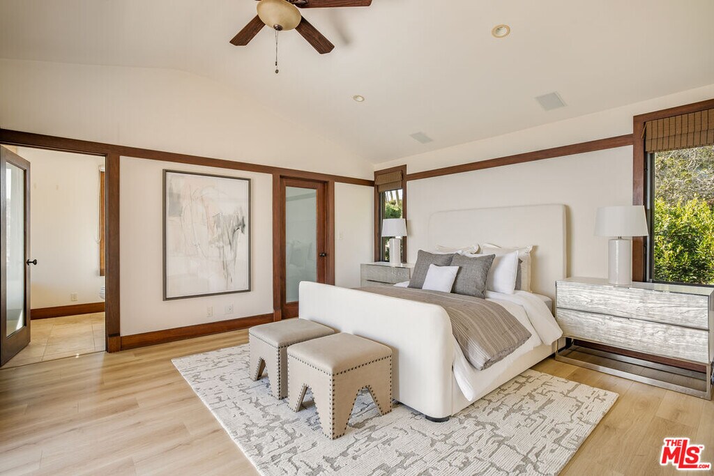Breathtaking Pacific Palisades estate available for lease, offering sweeping panoramic ocean views from DTLA to Catalina Island, the Queen's Necklace, and the beaches of Malibu. Designed by renowned architect Ray Kappe, this 6-bedroom, 8.5-bath residence sits above the tranquil grounds of Lake Shrine and provides one of the most stunning vantage points in the Palisades.Remodeled in the early 2000s, the home features floor-to-ceiling windows that frame the coastline and fill the interiors with natural light, creating a serene, private environment ideal for both everyday living and sophisticated entertaining. The main level includes a fully equipped cook's kitchen with an open flow into the formal dining area, multiple family rooms, a media/screening room, an exercise studio with an en-suite bath, maid's quarters, and a custom wine cellar with a tasting area. Outdoor living is exceptional, with expansive view decks, a lap pool and spa, and a peaceful setting for sunset gatherings. Two luxurious primary suites showcase dramatic ocean views, while the additional bedroom suites all include private bathrooms. The property is enhanced with an Enphase Solar Energy system, a separate 3-car covered garage, and a 50' x 75' lower parking area accommodating up to seven cars plus an RV. A charming guest house with a kitchenette and bathroom sits below the pool perfect for visitors, staff, or a private retreat. Moments from hiking and biking trails, beaches, and the best of Pacific Palisades, this exceptional architectural home offers a rare opportunity to experience serene, elegant coastal living now available for lease. MLS# 26661057