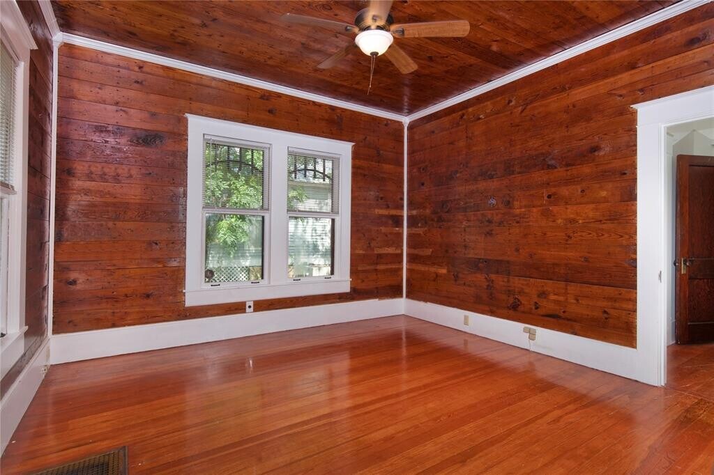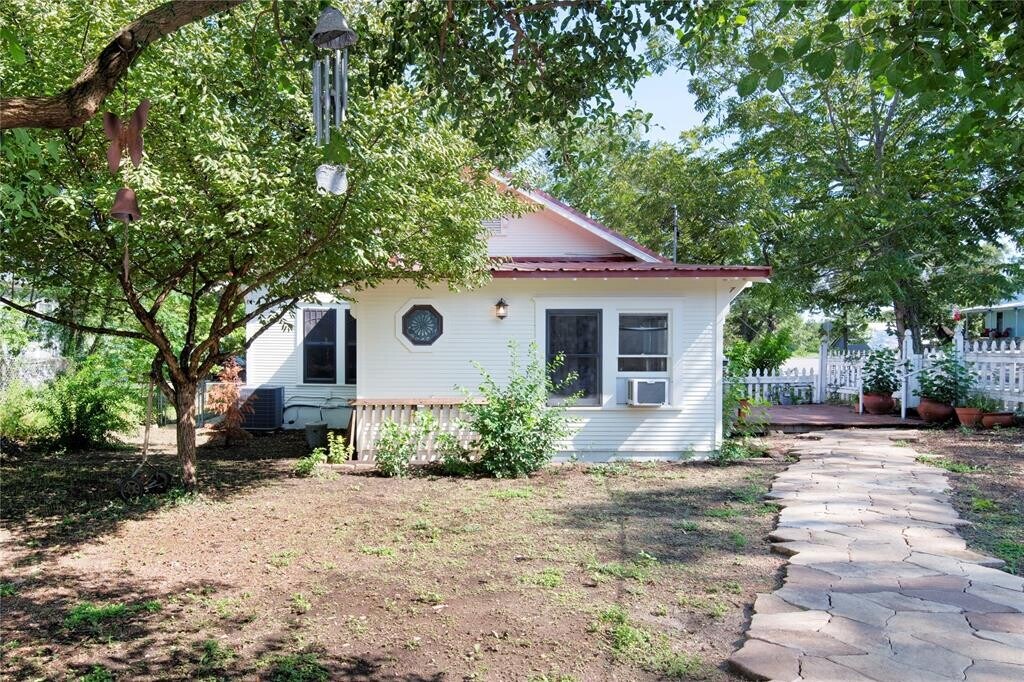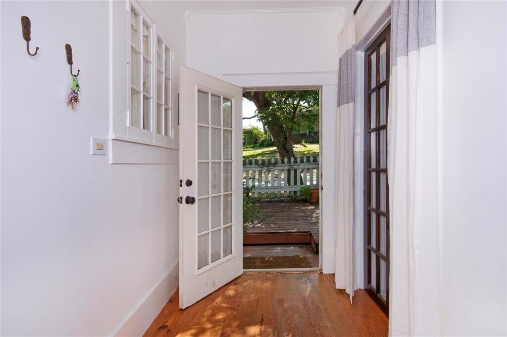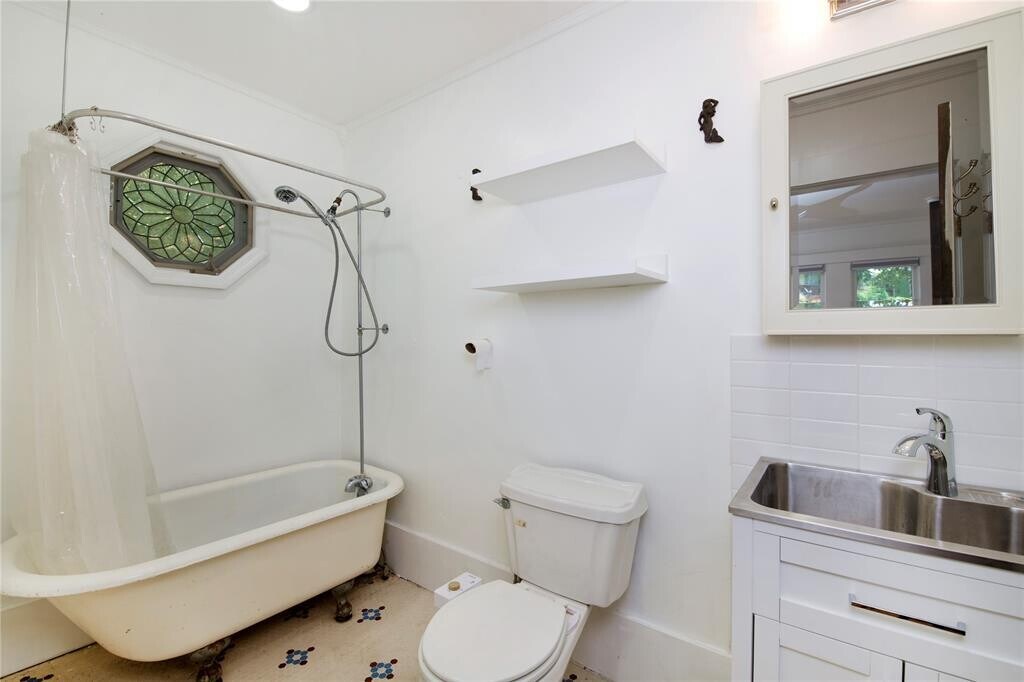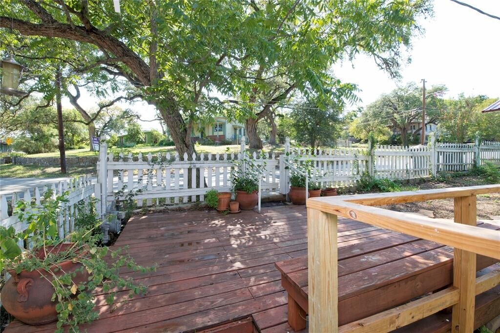 Historic Gem in the Heart of the Heritage District This beautifully renovated, 100-year-old Craftsman perfectly blends authentic charm with modern convenience. It features stunning wood and penny tile floors, original wood shiplap walls, and a period-detailed kitchen with abundant storage. The separate formal dining room may also be utilized as an office, as the kitchen is large enough for a dining table. The front bedroom is surrounded by windows. The property includes a private suite with separate entrance, a Murphy bed, and clawfoot tub. The finished detached garage with updated windows and minisplit A/C is a flexible space—perfect for an art studio, gym, or additional living quarters. Enjoy meeting your neighbors from the large wrap-around porch and deck on the large corner lot. Walk everywhere: Texas State University, the San Marcos River, HEB grocery, and lively downtown. Live in the sweetest home in the best little town in Texas.
