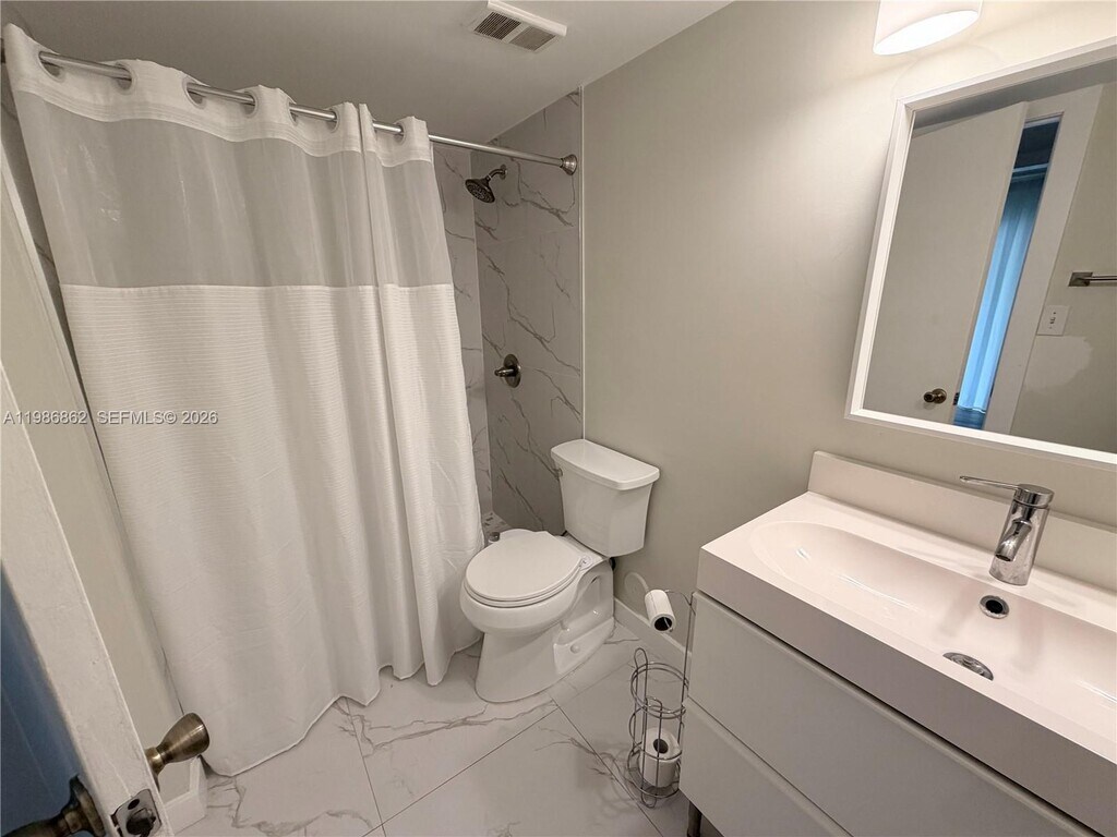 Renovated 1 bedroom / 1 bathroom unit located on the ground floor of a 3-story building, in a quiet and beautifully landscape condominium community that includes pool, tennis court and small fitness room. This bright and inviting apartment features modern ceramic flooring throughout along with an updated bathroom with new tiles and finishes. Washer & Dryer in unit! Large windows providing natural light, porch in front of the unit, exterior storage unit. The apt is furnished! MLS # A11986862