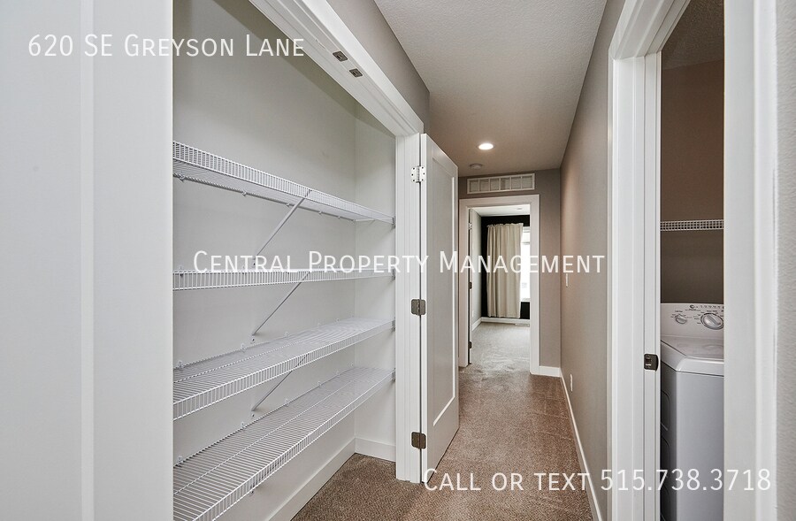 Beautiful townhome located in Kettletsone Heights townhome development in Waukee. This location provides for easy interstate access and is situated along the Grand Prairie Parkway corridor which includes new retail, restaurant, and entertainment developments including the Vibrant City Music Hall. The main level floor plan consists of garage entry, front covered porch, kitchen with elongated counter-top for dining, dining area, family room, a utility closet and a storage closet, and a 12 bath. The second level floor plan consists of a huge master bedroom suite with awesome walk-in closet and private bathroom, two additional bedrooms, a second full bath, a laundry closet (witch washer & dryer), and a linen storage closet. Completing the 2nd level is an oversized linen closet & laundry area including washer & dryer. Appliances include washer, dryer, refrigerator with water ice dispenser, dishwasher, microwave, and oven stove.Finishes include stainless steel appliances, tile backsplash, quartz counters, LVP or tile flooring, and high-end custom cabinets (dovetail construction, full extension, soft close doors & drawers, with hardware). Landlord pays HOA dues which provide snow removal and lawn care service. Tenant is responsible for all utilities including gas, electric, water, and internet. *Photos above may not be of exact townhome, but floor plan is the same and finishes are similar. This home is being used as a show unit.