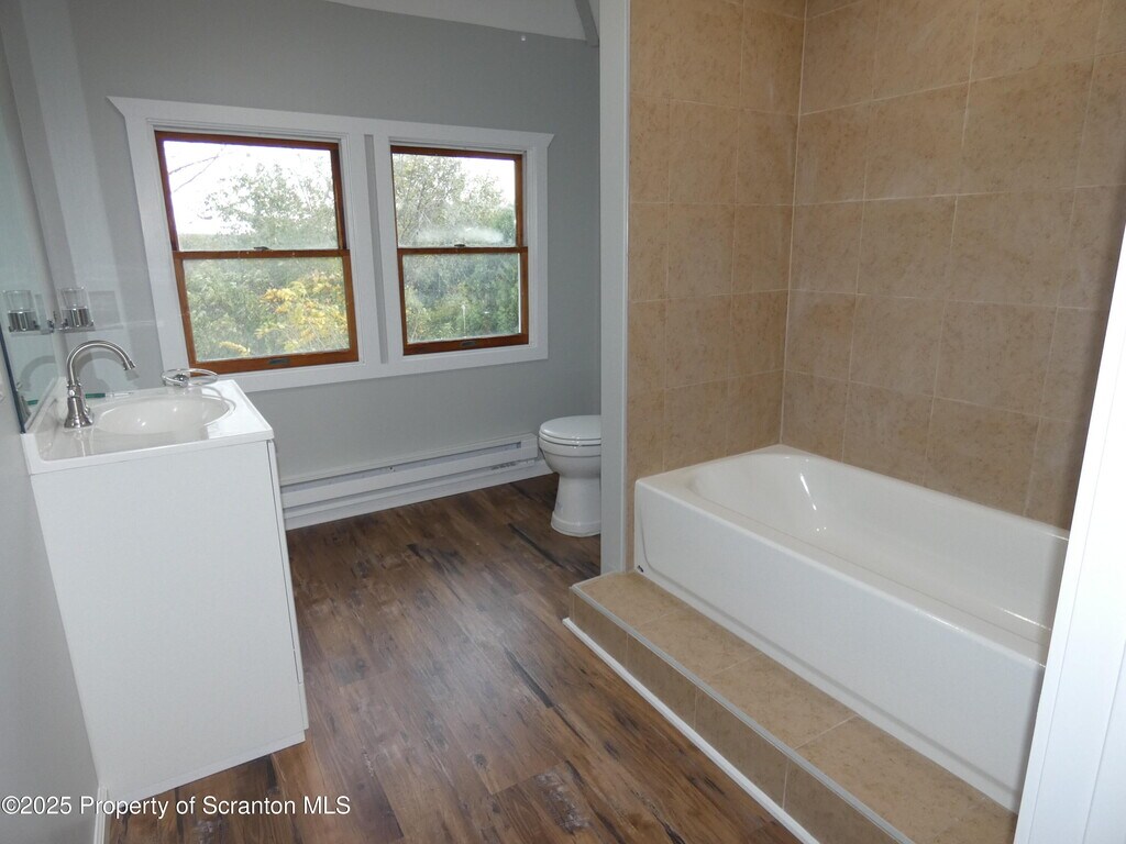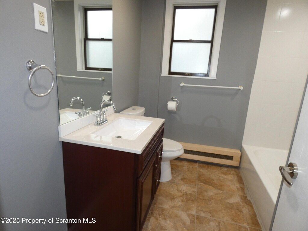 Beautifully remodeled Duplex home located in desirable neighborhood in Olyphant. Open floor plan,entire new floorings,new custom kitchen,stainless appliances and LED lighting. Second floor has 2 BR,new full bathroom and 3rd floor has Master bedroom (36x18) with new full bathroom(10x8) and additional room for toy room or office. Home also features a partially fenced in yard with new deck. Tenant Pays all utilities.