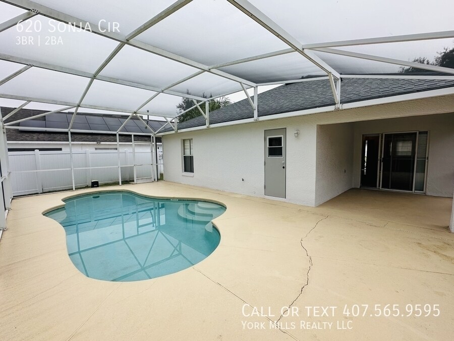 Charming 3-Bedroom Single-Family Home in Davenport, FL! Welcome to 620 Sonja Circle, a beautifully maintained 3-bedroom, 2-bathroom single-family home located in a quiet and convenient neighborhood of Davenport. This spacious property features an open-concept living area filled with natural light, perfect for relaxing or entertaining. The kitchen offers ample cabinet space, modern appliances, and a comfortable breakfast area. Enjoy Florida living with a generous backyard oasis, featuring an outdoor swimming pool surrounded by a well-maintained lawn and full privacy fencing. The spacious deck area offers plenty of room for outdoor seating, sunbathing, and weekend gatherings. Whether you're looking to relax after a long day or entertain guests, this serene pool area provides the perfect blend of comfort and Florida outdoor living. Situated minutes from local shopping, dining, schools, and major highways, this home offers both comfort and easy access to everything Davenport has to offer. Don't miss this opportunity—schedule your viewing today! *Rent include monthly lawn service ** Tenant is responsible all utilities and pool maintenance
