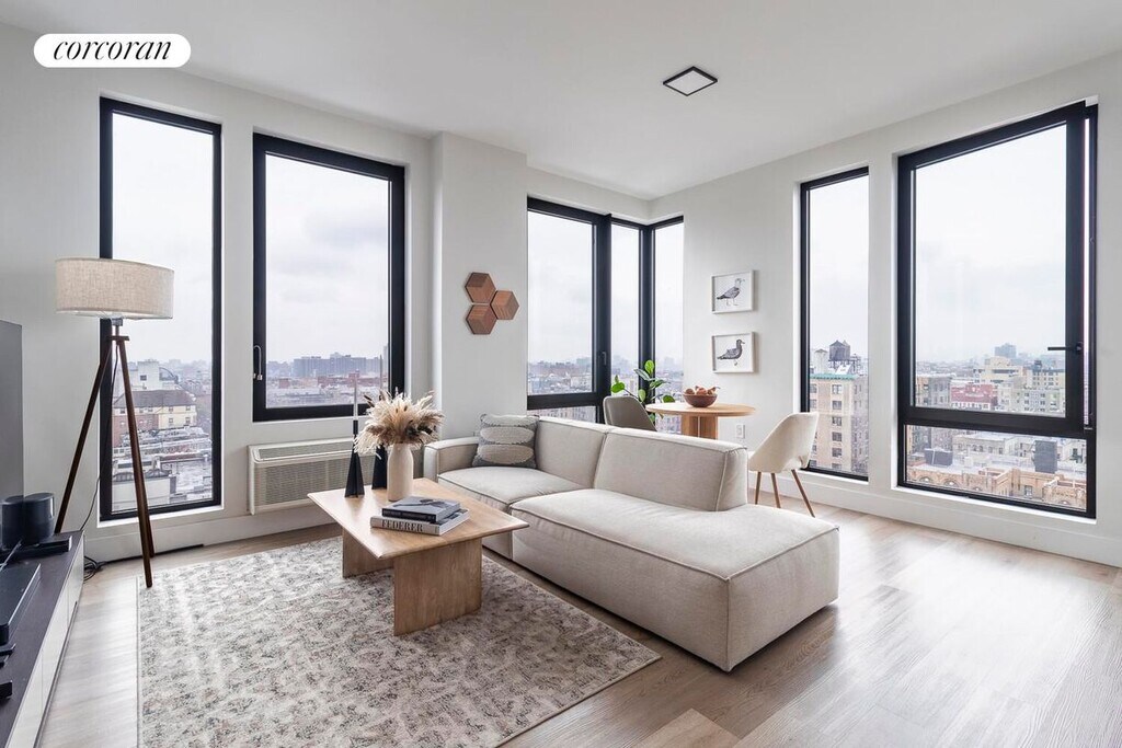 Welcome to Sunrose Tower, a spectacular 28 story new high-rise development nestled in Hamilton Heights. Opened to the public in 2023.14J is being offered as an Short-Term Rental or a 24-Month Rental. Landlord will cancel existing lease; incoming Tenant will sign a brand new lease starting now to end on August 14th 2026, OR sign a new 24 Month Lease. Beautifully designed contemporary open-concept, 2-Bedroom, 2-Bath Corner Apartment. Get ready to be enveloped by orange and purple sunrises and sunsets; this apartment boasts an unobstructed panoramic skyline view of the Hudson River, Midtown Skyscrapers and the tops of beautiful neighborhood pre-war buildings; a quintessential NYC View.The property is in excellent condition, the Kitchen has white lacquer minimalist cabinets, bright quartz counter-backsplash and stainless appliances. The Bathrooms feature to-the-ceiling modern tiles and floating vanity sinks, one bathroom has a shower-tub, the other has a large walk-in-shower. Light wide plank flooring throughout.Washer and Dryer in the unit. Central air.Located by vibrant restaurants and bars, Hispanic Society Museum and Library, American Academy of Arts and Letter, historic sites like Hamilton Grange and Morris Jumel-Mansion, Boricua College, City Collage, Columbia University and New York Presbyterian Hospital. Half a block from Riverside Park and The Hudson River Greenway where one can traverse the bank of the Hudson River.1 Subway Line and M4, M5 Bus.Amenities:. Concierge, Day Time Doorman, Security Camera.. Fitness Center - Treadmills, Workout Machinery and Free Weights.. 28th Floor Roof Deck - With Breathtaking 360-Degree Views, Table, Chairs and Barbecue Grill.. 3rd Floor Terrace - With Table, Chairs and Barbecue Grill.. Outdoor Playground - Jungle Gym, Spiral Slide and Swings.. Indoor and Outdoor Co-Work Spaces - Vending Machine, Conference Table, Large TV.. Lounge - With Comfortable Seating, Tables, TV and Book Shelf.. Pets - Dog Run and Pet Shampoo Vending Machine.. Package Room and Cold Storage.. Bike Room. Self Park Garage.Schedule a showing today and experience all that this remarkable property has to offer!$20 Application Fee.