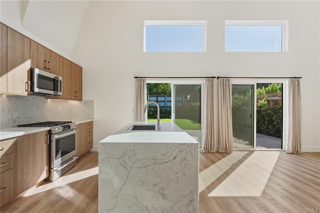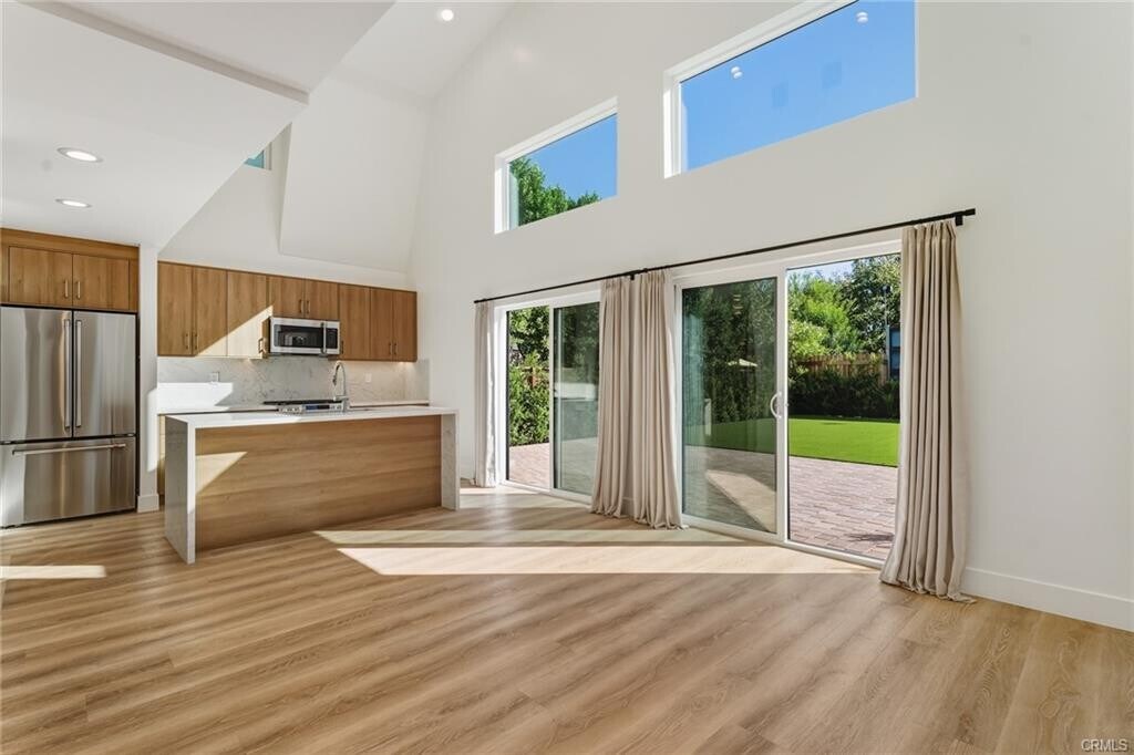 - Be the very first to live in this stunning 2025 newly constructed modern farmhouse with incredible sprawling backyard located in the highly desirable Walnut Acres neighborhood of Woodland Hills. The super private property has incredible curb appeal, featuring wood siding, automatic exterior sconce lighting, new landscaping, and an oversized driveway that can accommodate parking for several cars with Tesla EV charger. Step inside to find a bright and open floor plan with designer touches and thoughtful functionality. The entry foyer leads to the showstopper of a living room featuring two-story ceilings with expansive picture windows that flood the space with natural light and two sets of glass sliders that open to the backyard for the perfect indoor/outdoor flow. The chef’s gourmet kitchen opens directly to the living room and boasts center island with waterfall quartz counters, custom soft close cabinetry with quartz backsplash, and stainless Cafe appliances including built-in range with 6-burner gas stovetop, fridge/freezer, microwave, and dishwasher. There is a first floor large bedroom featuring built-in workspace, closet with custom built-ins, and access to a full bathroom with walk-in shower and designer tiling. The first level also features a laundry room with washer, dryer, & countertop with built-in storage cabinetry; impressive wall-to-wall built-in hallway storage; plus a separate wraparound storage room. Upstairs you will find two additional bedrooms, each featuring built-in workspaces and walk-in closets with custom built-ins. The upstairs bedrooms share a spacious hallway bathroom with large vanity and bath tub with shower. The entertainer’s backyard features paver stone patio perfect for outdoor dining, large synthetic lawn for play, lush landscaping and perimeter privacy hedging with landscape lighting, and gated side yard for additional storage. Adjacent to dining/shopping at the Westfield Mall/Village, Calabasas Commons, local parks/hiking, & zoned for award-winning El Camino & Hale charter schools. Listing provided by: Desiree Zuckerman of Rodeo Realty LA State License 1292971 Listing posted by Gary Cole [SYNDID 4141524 11172025]